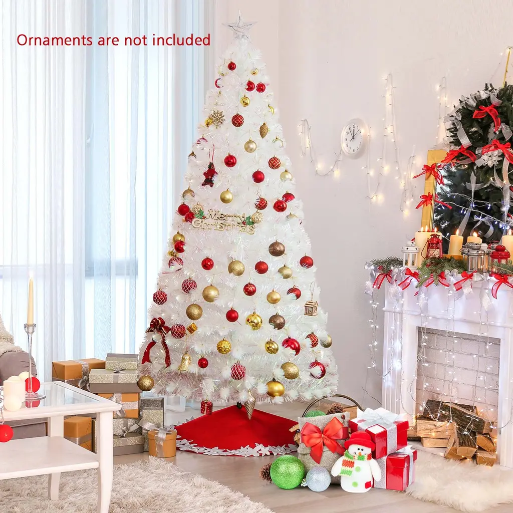 Spend an unforgettable holiday in the company of the Xmas tree! With a lush design, its 170/220/270 lifelike branch tips & white design add a refreshing touch to any room. The dazzling translucent leaves refract a spectrum of colors when hit by light, creating an exquisite display. Crafted from sturdy & non-allergic PET material, this 5 ft/ 6ft/7ft Xmas tree is built to last for years to come. For colorful lights like a rainbow, it features 24/30/36 multi-color LED lights & 24/30/36 snowflakes that can be used as delicate ornaments, with an extra snowflake included. The Xmas tree is equipped with mesmerizing fiber optics & topped with a glowing star for the perfect finishing touch. Plus, our UL-certified Christmas tree comes with a foldable metal stand that has anti-slip foot pads, ensuring stability throughout the holiday season. Features:Specification