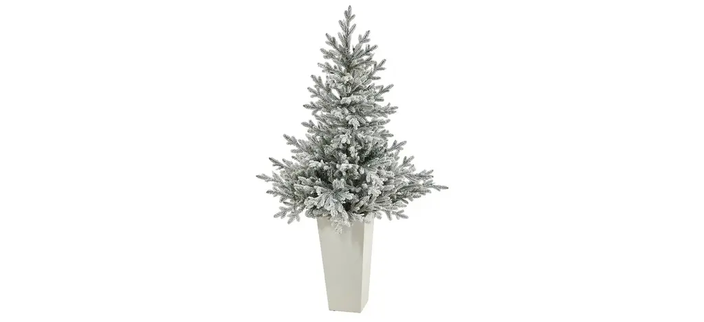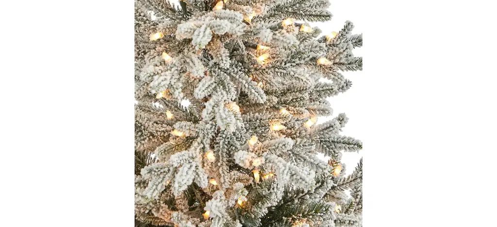 If you dream of a white Christmas, look no further; the 57" Pre Lit Flocked Fraser Fir Artificial Tree makes your wish come true with a realistic replica of winter.