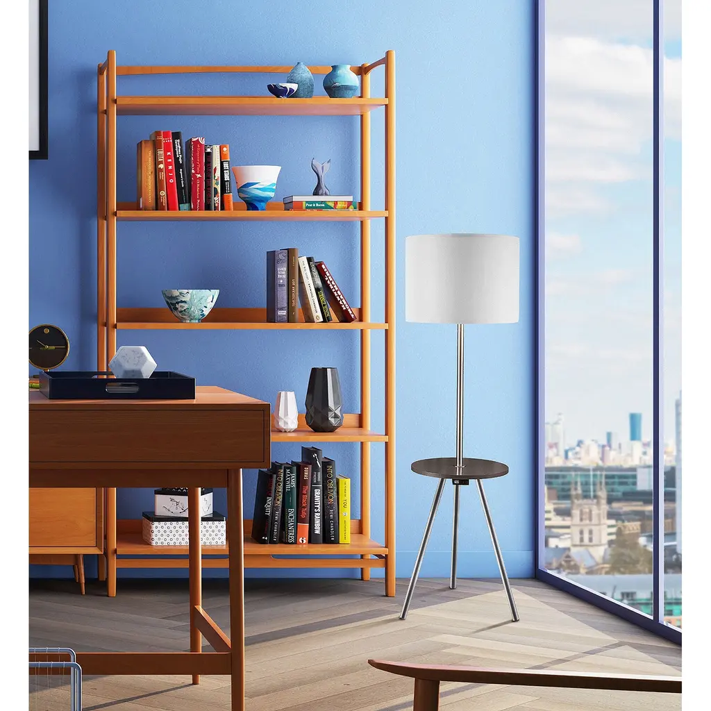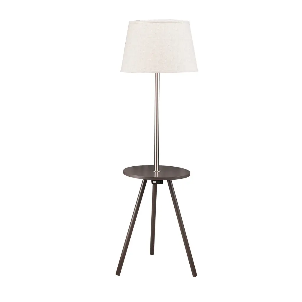 57" Round Sofa Side Table W/ Lamp And Power Station (1.56/9.9) - Espresso