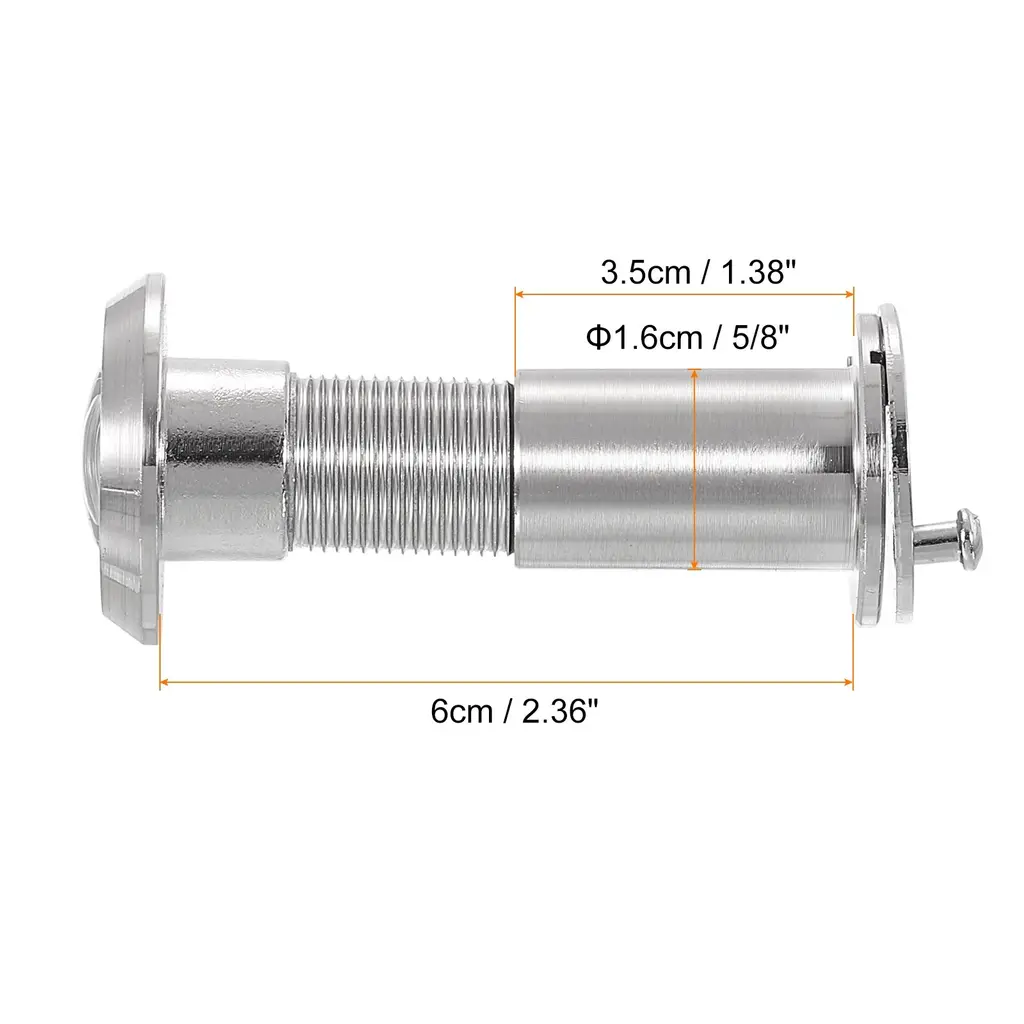 √FEATURE: Stylish designed door viewer peepholes consisting of HD lens provides 200 degree view area and crystal clear panoramic view.It covers the area from the porch ceiling to the doormat.You can spot packages without opening the door and easily see anyone present outside from head to toe, so it can take good care of you and your family safety.Also with the peephole cover, no one from outside can see through the viewer into your home even with the reverse peephole. No light will beam through the hole to disturb you, you can open and close the back cover flexibly and smoothly.√APPLICATION: Door peephole viewer from durable zinc alloy, the door viewer comes with a sleek contemporary design to match your existing hardware and decor, blending in perfectly with various doors. A must-safety complement for home, office, and hotel. And any need to check the situation outside the door before open.√PACKING LIST: In the package of 2pcs door viewer peepholeMaterial: Zinc AlloyDiameter Hole: 16-21mm/0.63"-0.83"Door Thickness: 35-60mm/1.38"-2.36"Color: Red BrushedMinimum Height: 3.5cm/1.38", Maximum Stretched Height: 6cm/2.36"Door Viewer diameter: 5/8"WxL:3x3cm/1.18"x1.18"√NOTE: Know the thickness of the door and the diameter of the hole. That will make it easy to choose and installed. If there is no hole in the door, you only need to know the approximate thickness of the door.