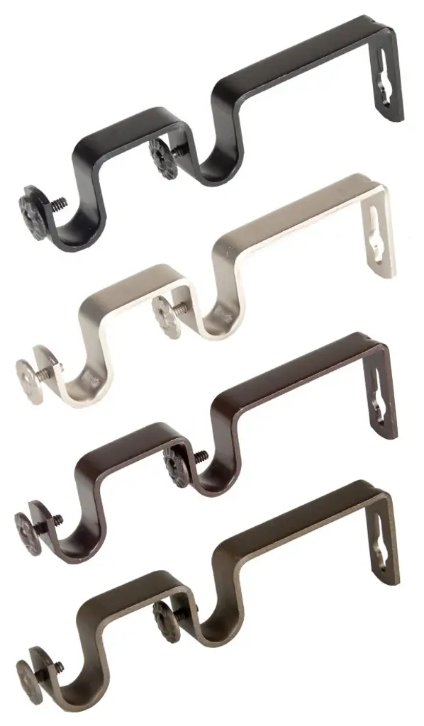 Central Design Products presents the perfect enhancement to your window treatment with high end drapery hardware. Easily use these wall mounting double brackets with any rod of 5/8" diameter or smaller. Includes 2 double wall brackets and mounting hardware Projection: 6.25" from the wall to front rod. 3.75" from wall to back rod Material: Steel