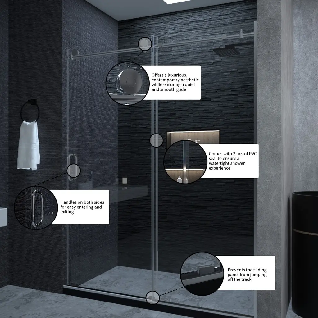 The frameless sliding shower door is everything you want and need to complete your bathroom remodel. The warm and welcoming barn door style, along with plenty of transparency, makes this simple combination feel extraordinary. Upgraded 8mm glass panels provide a substantial feel with a comfortable slide.Features: