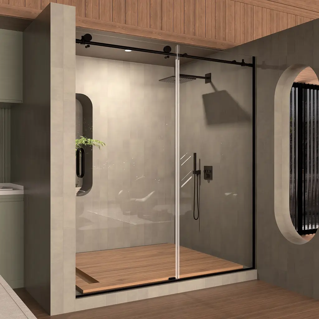 The frameless sliding shower door is everything you want and need to complete your bathroom remodel. The warm and welcoming barn door style, along with plenty of transparency, makes this simple combination feel extraordinary. Upgraded 8mm glass panels provide a substantial feel with a comfortable slide.Features: