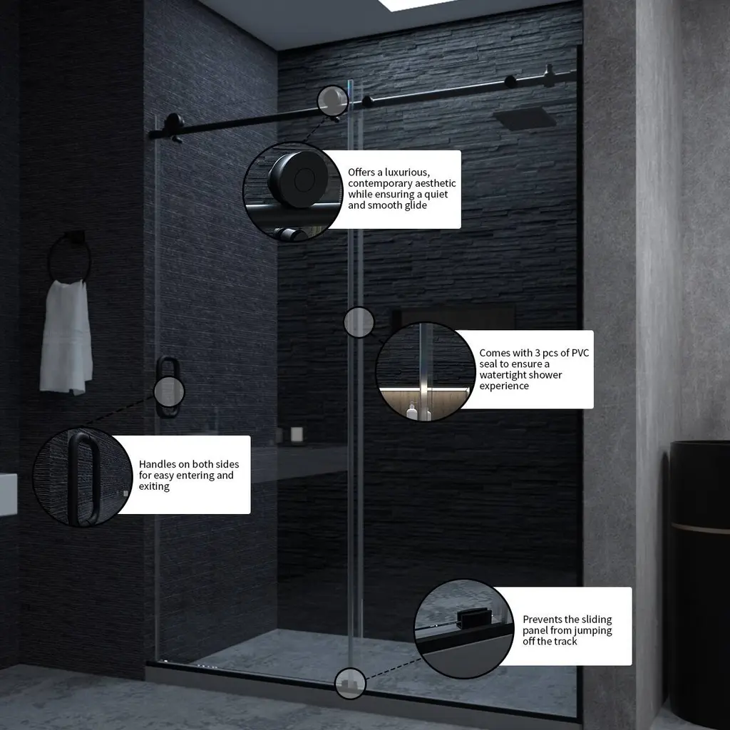 58 To 60 In. W X 76 In. H Frameless Sliding Shower Door With 5/16" (8mm) Clear Tempered Glass - Matte Black