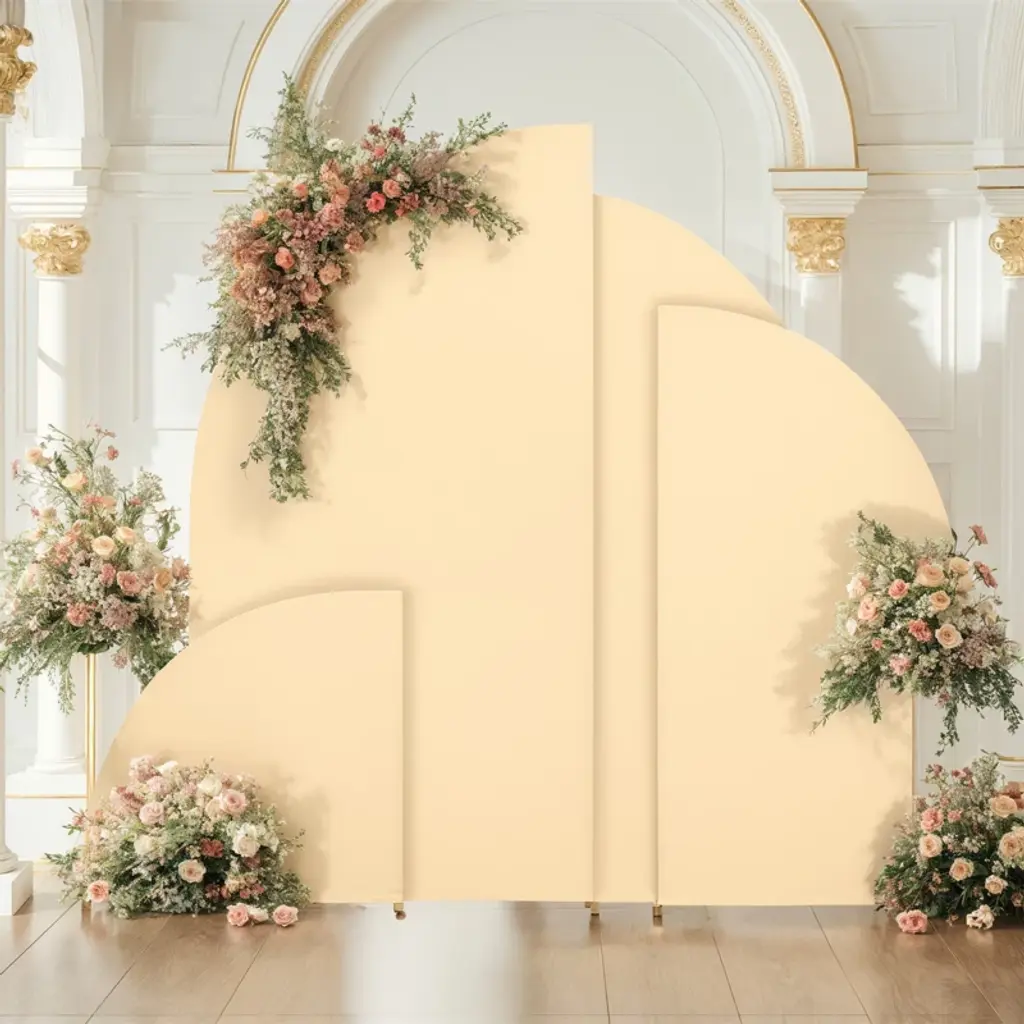 5Ft Backdrop Stand Cloth Cover With Half Moon Shape, 2-sided Design, Reusable Elastic Backdrop Stand Cover Champagne