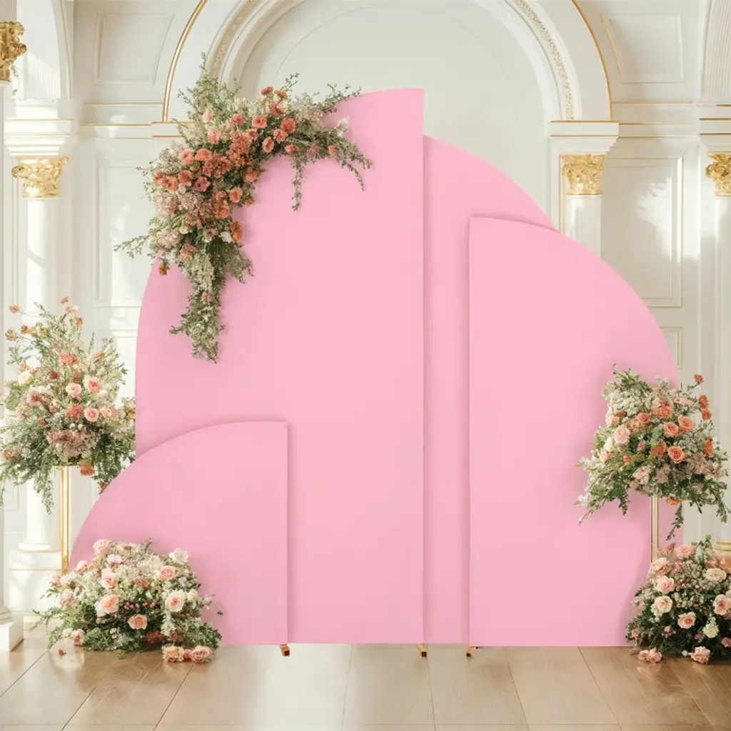 5Ft Backdrop Stand Cloth Cover With Half Moon Shape, 2-sided Design, Reusable Elastic Backdrop Stand Cover Pink