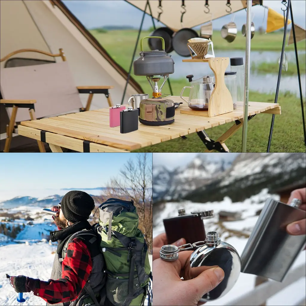 5Oz/140ml Stainless Steel Hip Flask For Camping Outdoor Activity - Green