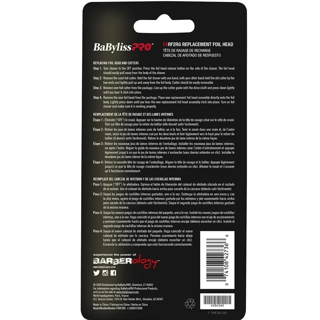 Five Packs BabylissPRO Replacement Foil & Cutter for FXFS2 Rose Gold Color This Double Replacement Foil and Cutters set can be used interchangeably with any BaBylissPRO double foil shaver. Mix and Match gold, rose gold or silver finishes according to your own unique styleThis replacement foil and cutters give you an extra-close shave on the neck, face, and all around the hairlineMPN:FXRF2RGx5 UPC:074108427366