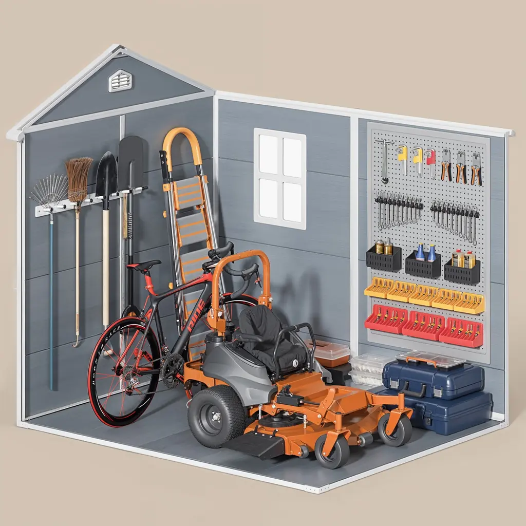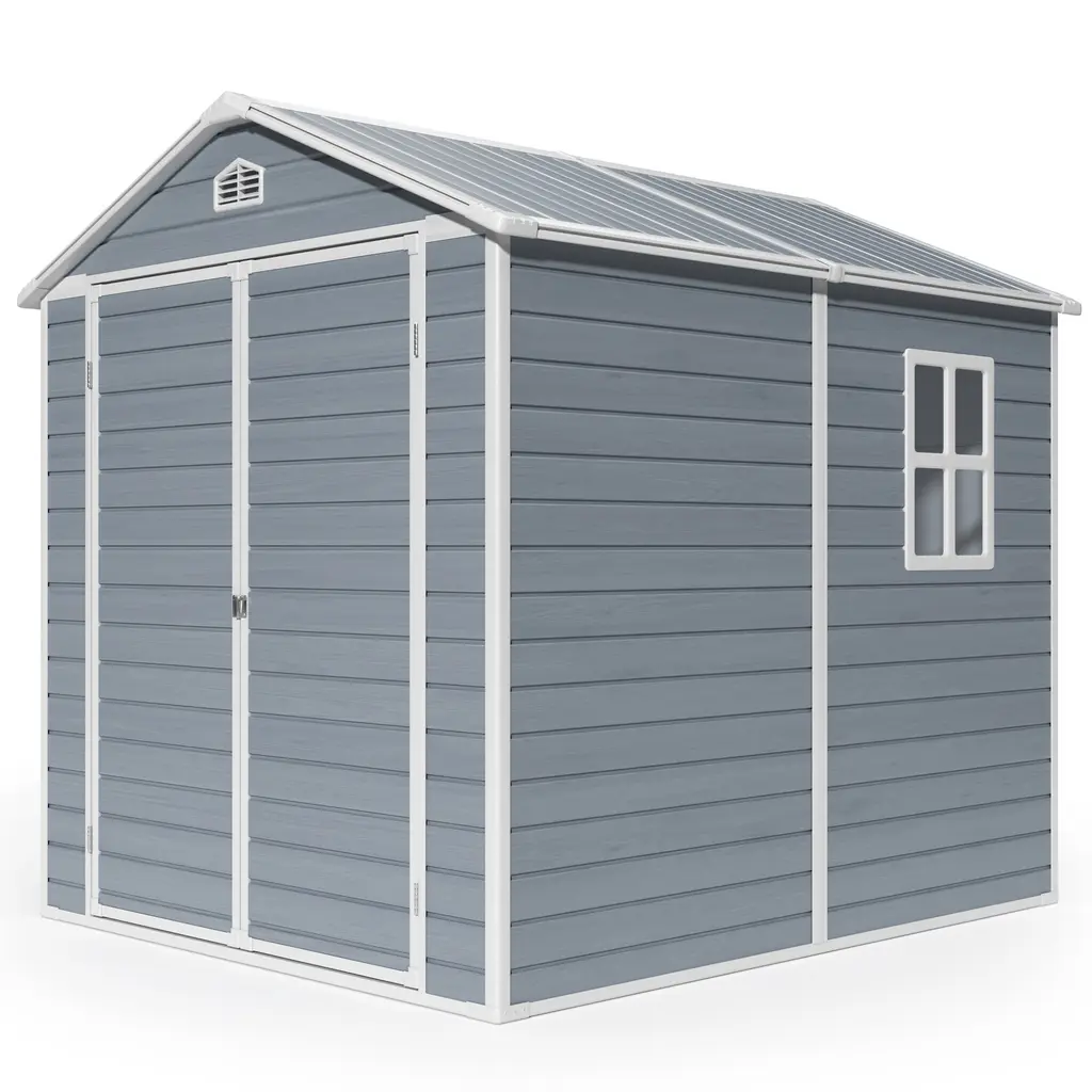 5X3 / 6X4 / 8X6 Ft Outdoor Storage Shed With Floor, Resin Garden Tool Shed With Lockable Doors, Waterproof Plastic Storage Sheds - 8*6 Ft