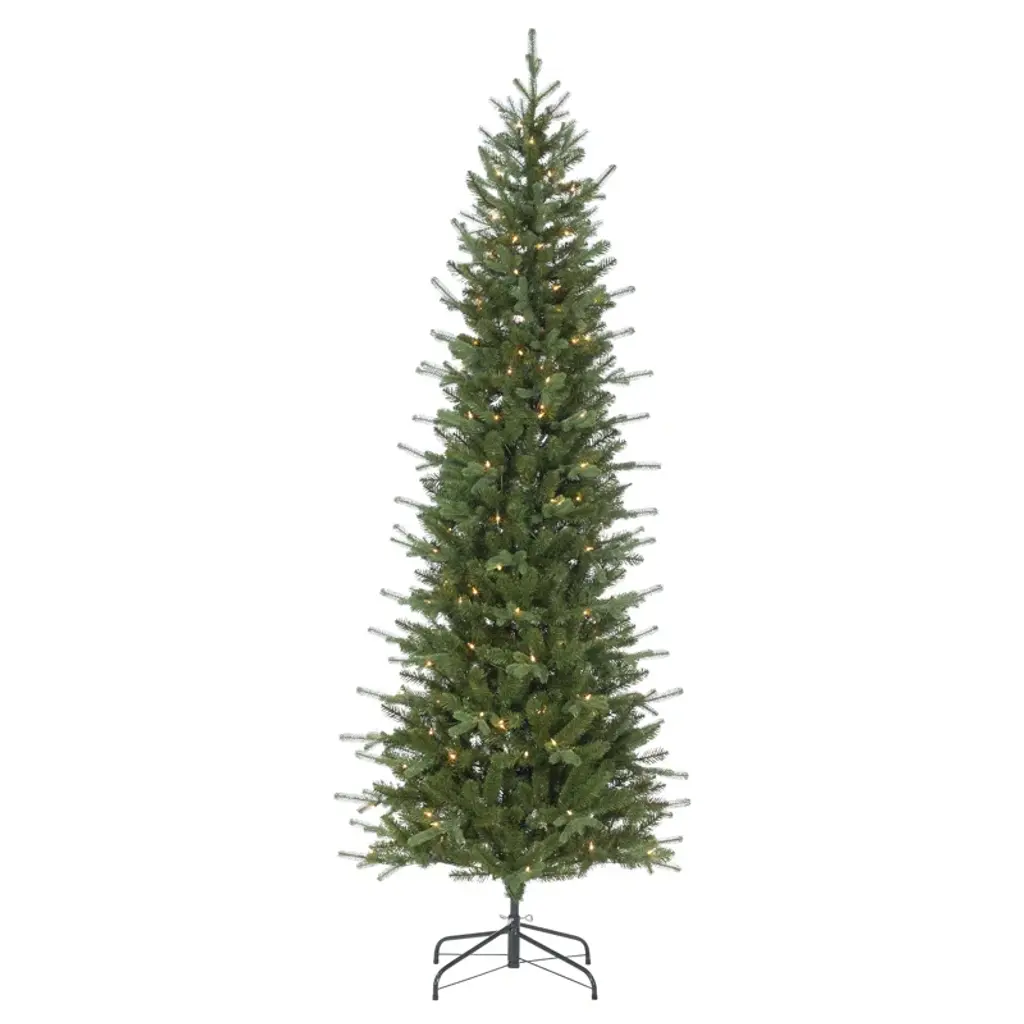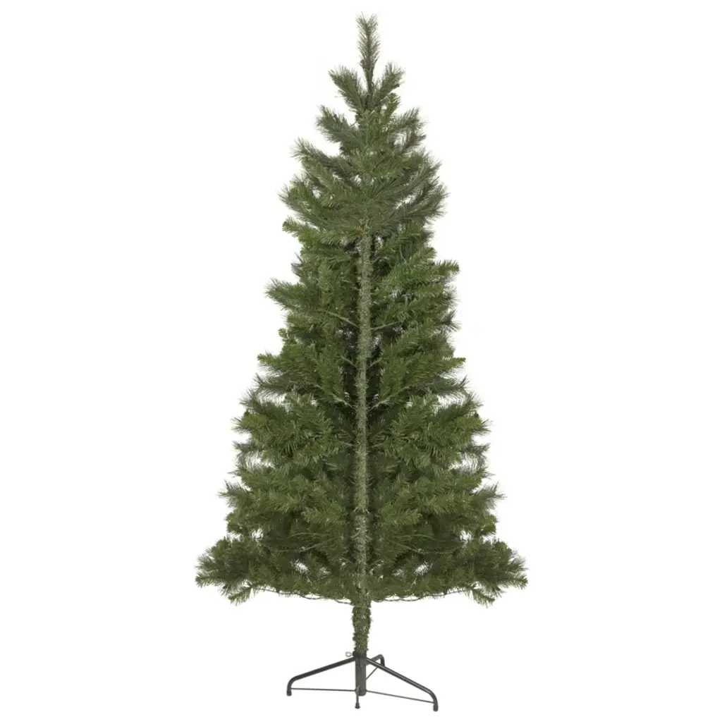 Winter is coming and you need something to brighten up your Christmas. Why not get this pre-lit Beaver Pine artificial wall Christmas Tree. The lush mix of foliage gives it realistic charm and the clear lights add some sparkle to your decor. Product Features: Pre-lit with 150 clear lights. Bulb size: mini. Bulb type: incandescent. 579 tips. 2" - 3.25" wide tips. 35" green lead cord. Additional Product Features: Lush mix of foliage. 4-piece easy assembly (including tree stand). Light sets on tree are UL listed certified and approved for indoor or outdoor use however the tree itself is recommended for indoor use only. Comes with replacement bulbs and fuses. green metal tree stand. Wire gauge: 22. 120 volts 60 hertz .17 amps 20.4 watts. Dimensions: 6.5' high (from the base of the stand to the top of the tree). 36" wide (at widest point). Material(s): PVC/metal/glass bulbs/wire/metal. Note: Branches are compressed for shipment and need to be fluffed out upon arrival to look like the photo.