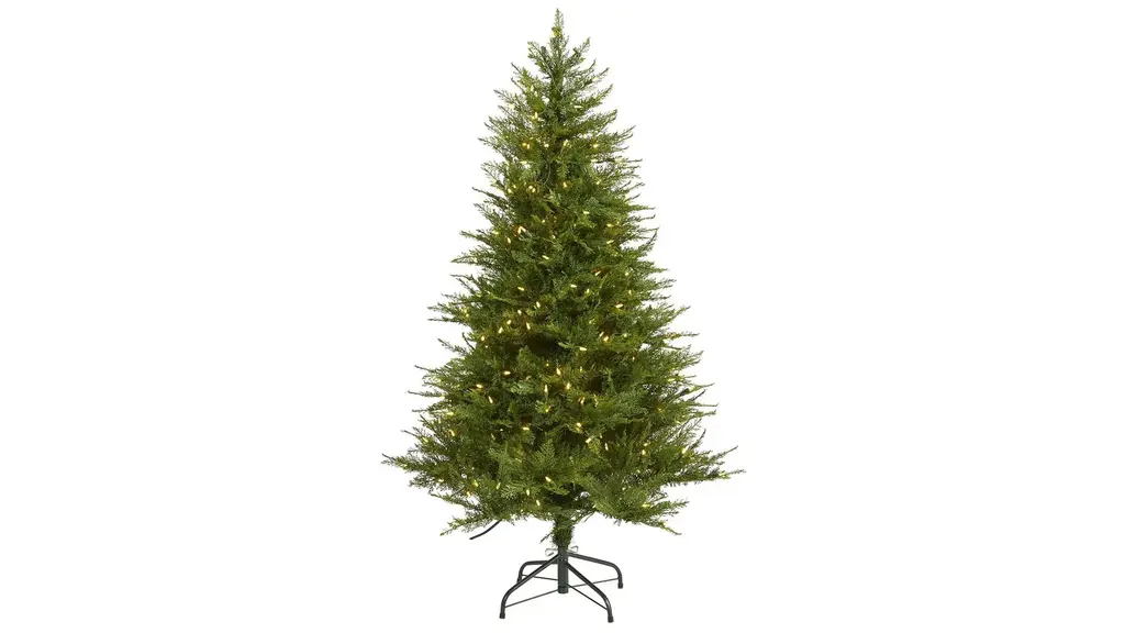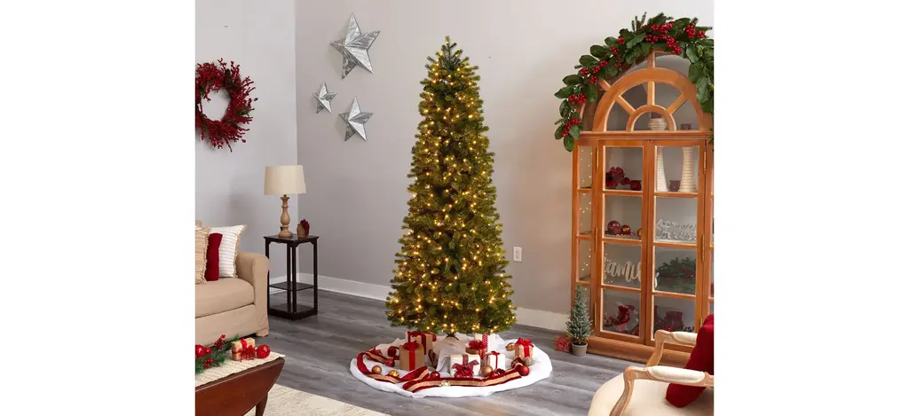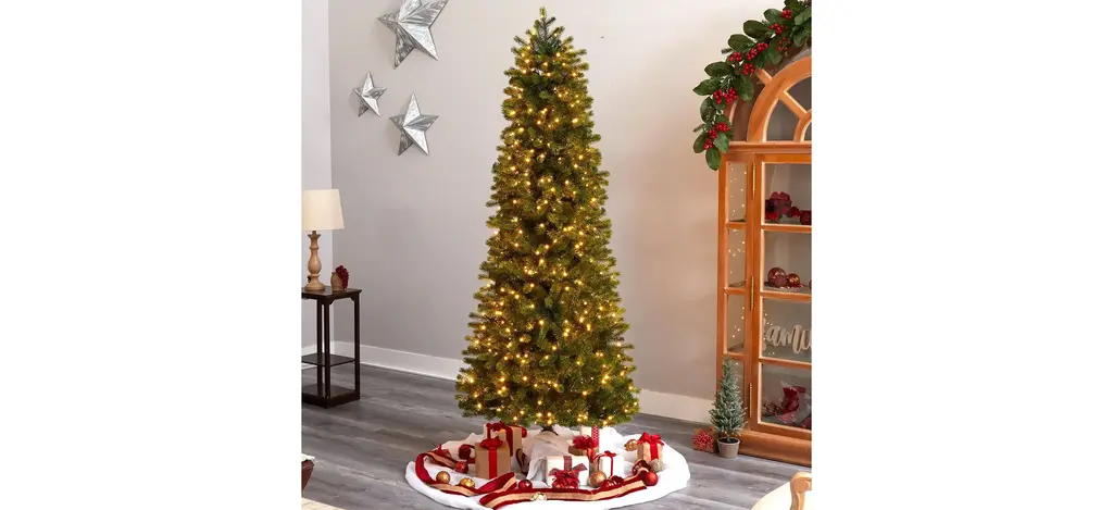 Create a traditional evergreen setting even in the tightest spaces with the help of the 6.5' Pre-Lite Slim Colorado Mountain Spruce Artificial Tree. Entirely maintenance free, it features a tight, slimming silhouette made up of mountain greenery