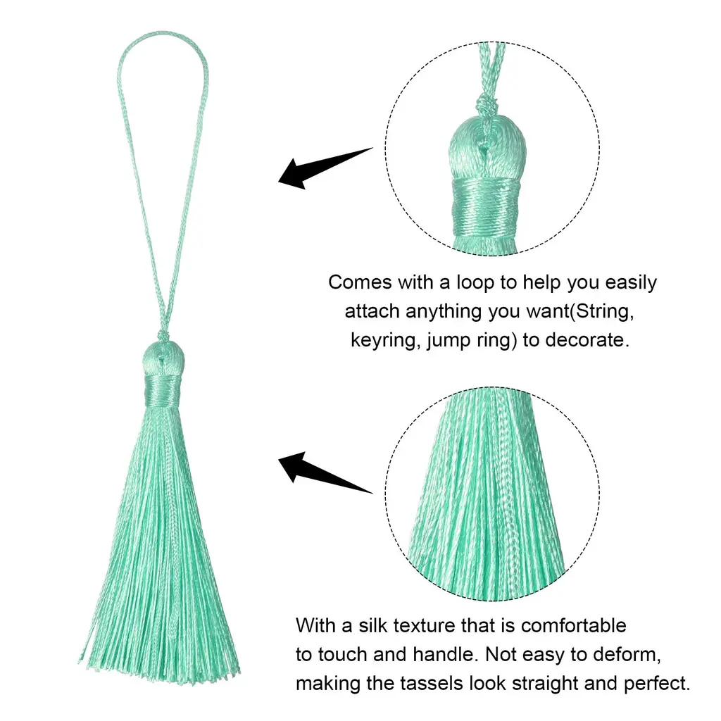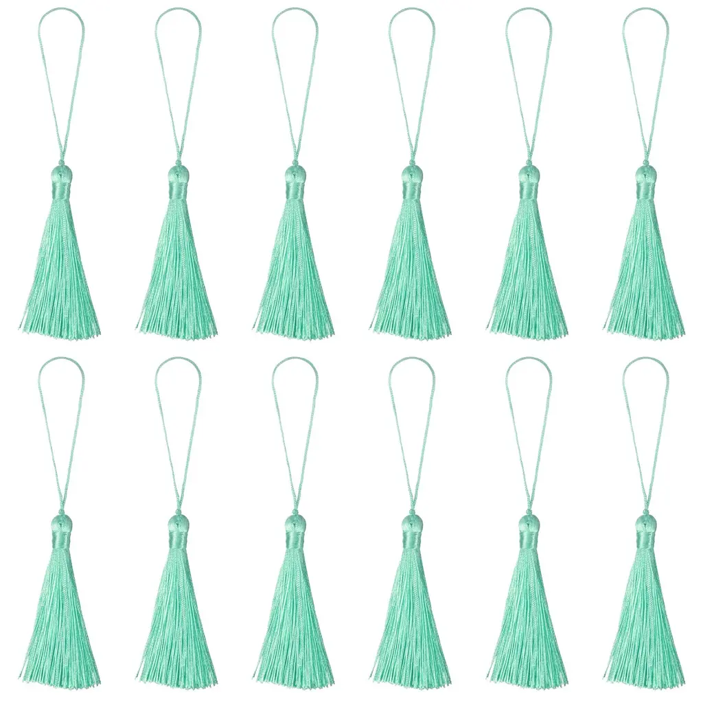 [Bookmark Tassels] - Total Size: 165mm x 10mm/6.5" x 0.39"(L*W); Tassel length: 85mm/3.35"; Loop Length: 80mm/3.15"; Color: Army Green; Package Included: 12Pcs x Bookmark Tassels.[Material] - Made of polyester material that is sturdy and durable. It has excellent properties such as long-term use without ironing, wear resistance, non-deformation, high strength, and high elastic recovery.[Feature] - The tassel with a silky smooth texture that is comfortable to touch and handle. The tassel thread is tightly wound and not easy to fall off, so that the tassel hang high and looks straight and perfect.[Easy to Use] - Designed with knotted loop to help you easily attach anything you want to decorate without wasting time looking for a string or worrying about splitting the thread as it goes through the body.[Application] - Great for bookmark tassels, keychain tassels, graduation caps, bag accessories, zipper pulls, curtain pendants, clothing design, jewelry making and handmade diy accessories crafting.Description:Made of polyester material that is sturdy and durable. It has excellent properties such as long-term use without ironing, wear resistance, non-deformation, high strength, and high elastic recovery.The tassel with a silky smooth texture that is comfortable to touch and handle. The tassel thread is tightly wound and not easy to fall off, so that the tassel hang high and looks straight and perfect.Designed with knotted loop to help you easily attach anything you want to decorate without wasting time looking for a string or worrying about splitting the thread as it goes through the body.Great for bookmark tassels, keychain tassels, graduation caps, bag accessories, zipper pulls, curtain pendants, clothing design, jewelry making and handmade diy accessories crafting.Product Specifications:Material: PolyesterColor: Army GreenTotal Size: 165mm x 10mm/6.5" x 0.39"(L*W)Tassel length: 85mm/3.35"Loop Length: 80mm/3.15"Package Included:12Pcs x Bookmark Tassels