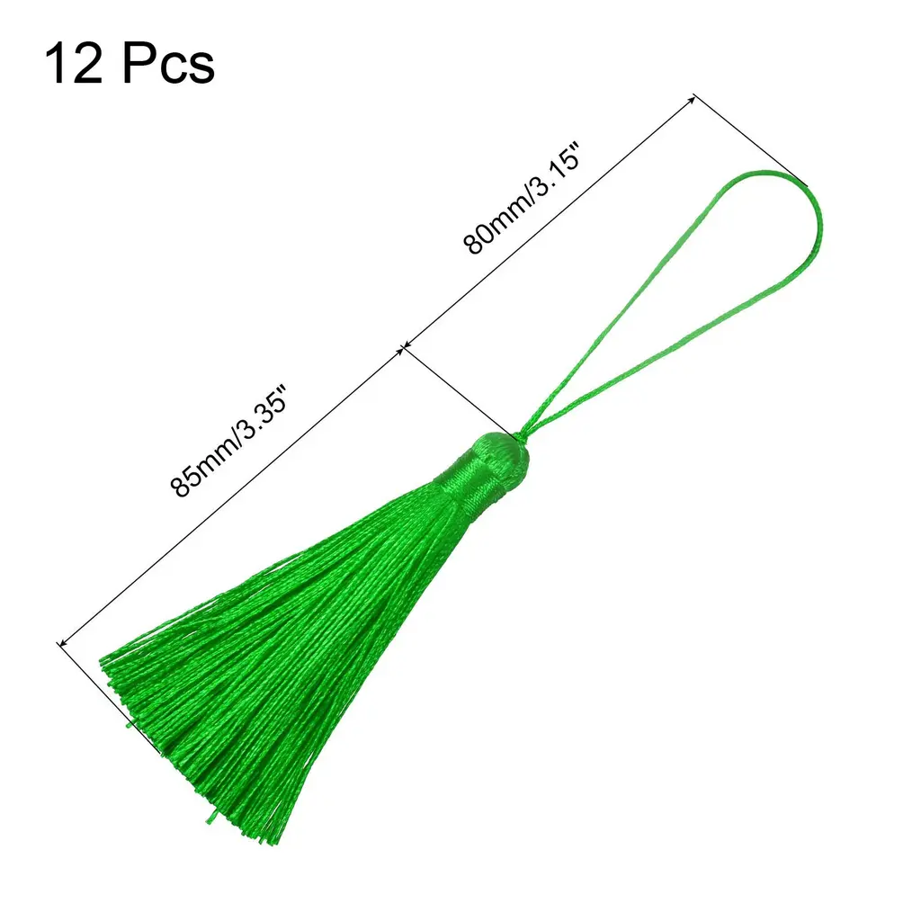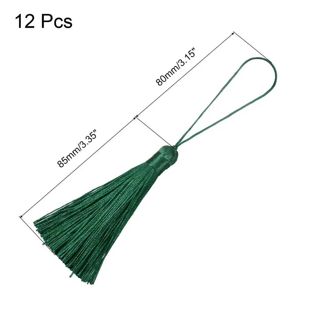 Description:Made of polyester material that is sturdy and durable. It has excellent properties such as long-term use without ironing, wear resistance, non-deformation, high strength, and high elastic recovery.The tassel with a silky smooth texture that is comfortable to touch and handle. The tassel thread is tightly wound and not easy to fall off, so that the tassel hang high and looks straight and perfect.Designed with knotted loop to help you easily attach anything you want to decorate without wasting time looking for a string or worrying about splitting the thread as it goes through the body.Great for bookmark tassels, keychain tassels, graduation caps, bag accessories, zipper pulls, curtain pendants, clothing design, jewelry making and handmade diy accessories crafting.Product Specifications:Material: PolyesterTotal Size: 165mm x 10mm/6.5" x 0.39"(L*W)Tassel length: 85mm/3.35"Loop Length: 80mm/3.15"Package Included:12Pcs x Bookmark Tassels