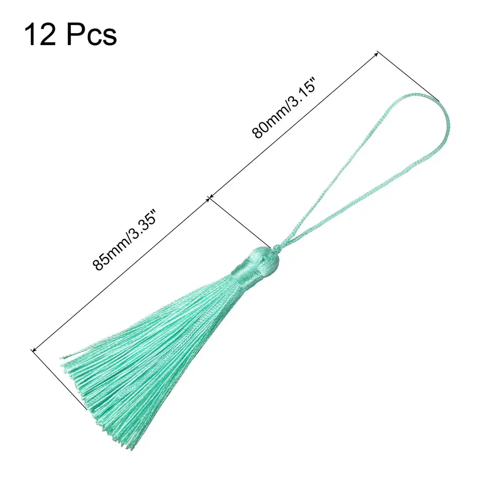 Description:Made of polyester material that is sturdy and durable. It has excellent properties such as long-term use without ironing, wear resistance, non-deformation, high strength, and high elastic recovery.The tassel with a silky smooth texture that is comfortable to touch and handle. The tassel thread is tightly wound and not easy to fall off, so that the tassel hang high and looks straight and perfect.Designed with knotted loop to help you easily attach anything you want to decorate without wasting time looking for a string or worrying about splitting the thread as it goes through the body.Great for bookmark tassels, keychain tassels, graduation caps, bag accessories, zipper pulls, curtain pendants, clothing design, jewelry making and handmade diy accessories crafting.Product Specifications:Material: PolyesterTotal Size: 165mm x 10mm/6.5" x 0.39"(L*W)Tassel length: 85mm/3.35"Loop Length: 80mm/3.15"Package Included:12Pcs x Bookmark Tassels