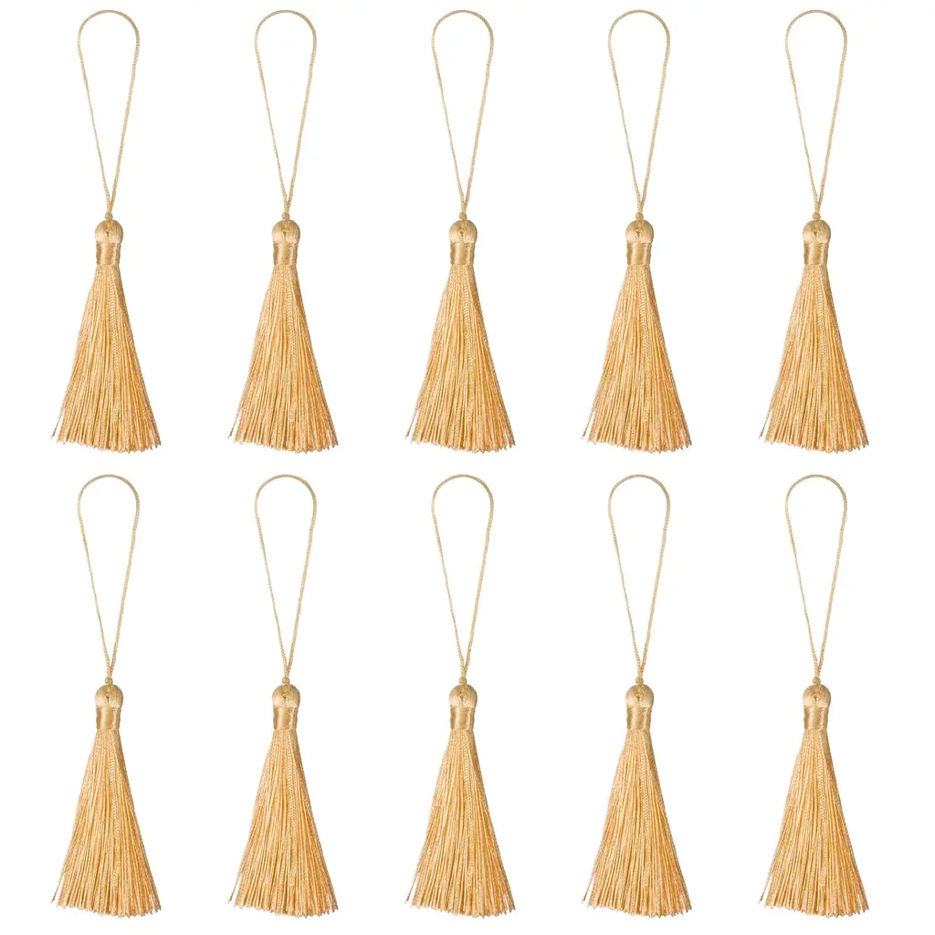 [Bookmark Tassels] - Total Size: 165mm x 10mm/6.5" x 0.39"(L*W); Tassel length: 85mm/3.35"; Loop Length: 80mm/3.15"; Color: Khaki; Package Included: 20Pcs x Bookmark Tassels.[Material] - Made of polyester material that is sturdy and durable. It has excellent properties such as long-term use without ironing, wear resistance, non-deformation, high strength, and high elastic recovery.[Feature] - The tassel with a silky smooth texture that is comfortable to touch and handle. The tassel thread is tightly wound and not easy to fall off, so that the tassel hang high and looks straight and perfect.[Easy to Use] - Designed with knotted loop to help you easily attach anything you want to decorate without wasting time looking for a string or worrying about splitting the thread as it goes through the body.[Application] - Great for bookmark tassels, keychain tassels, graduation caps, bag accessories, zipper pulls, curtain pendants, clothing design, jewelry making and handmade diy accessories crafting.Description:Made of polyester material that is sturdy and durable. It has excellent properties such as long-term use without ironing, wear resistance, non-deformation, high strength, and high elastic recovery.The tassel with a silky smooth texture that is comfortable to touch and handle. The tassel thread is tightly wound and not easy to fall off, so that the tassel hang high and looks straight and perfect.Designed with knotted loop to help you easily attach anything you want to decorate without wasting time looking for a string or worrying about splitting the thread as it goes through the body.Great for bookmark tassels, keychain tassels, graduation caps, bag accessories, zipper pulls, curtain pendants, clothing design, jewelry making and handmade diy accessories crafting.Product Specifications:Material: PolyesterColor: KhakiTotal Size: 165mm x 10mm/6.5" x 0.39"(L*W)Tassel length: 85mm/3.35"Loop Length: 80mm/3.15"Package Included:20Pcs x Bookmark Tassels