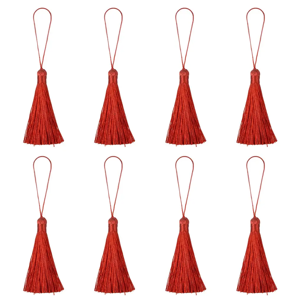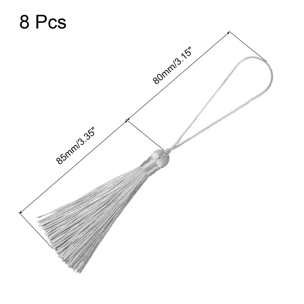 Description:Made of polyester material that is sturdy and durable. It has excellent properties such as long-term use without ironing, wear resistance, non-deformation, high strength, and high elastic recovery.The tassel with a silky smooth texture that is comfortable to touch and handle. The tassel thread is tightly wound and not easy to fall off, so that the tassel hang high and looks straight and perfect.Designed with knotted loop to help you easily attach anything you want to decorate without wasting time looking for a string or worrying about splitting the thread as it goes through the body.Great for bookmark tassels, keychain tassels, graduation caps, bag accessories, zipper pulls, curtain pendants, clothing design, jewelry making and handmade diy accessories crafting.Product Specifications:Material: PolyesterTotal Size: 165mm x 10mm/6.5" x 0.39"(L*W)Tassel length: 85mm/3.35"Loop Length: 80mm/3.15"Package Included:8Pcs x Bookmark Tassels
