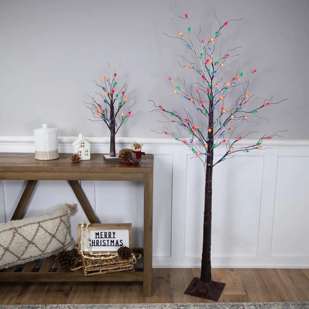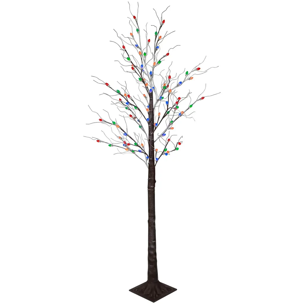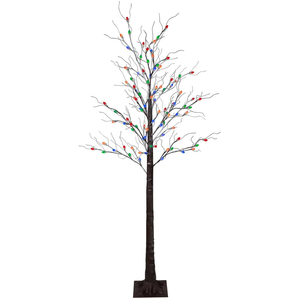 6' Brown Led Lighted Frosted Christmas Twig Tree - Multi-Color Lights - 6 Foot