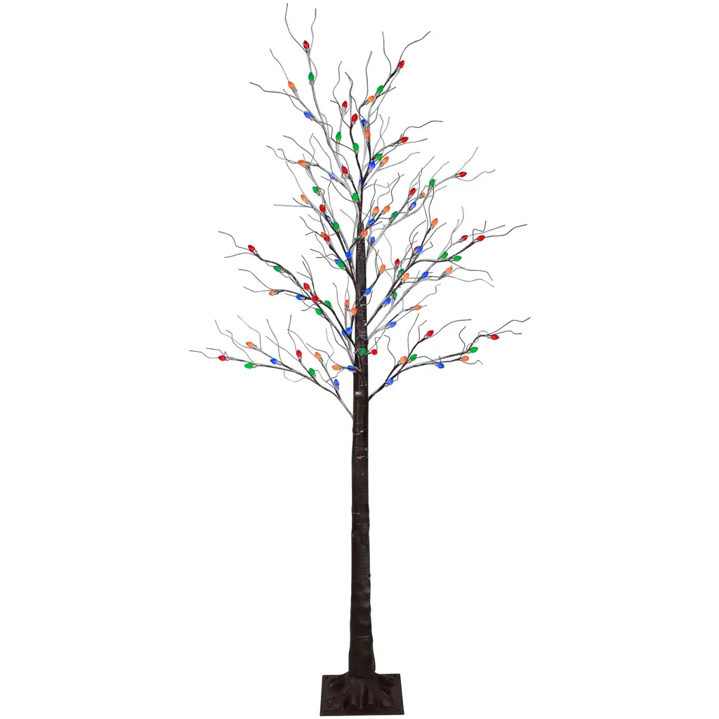 6' Brown Led Lighted Frosted Christmas Twig Tree - Multi-Color Lights - Brown - 6 Foot