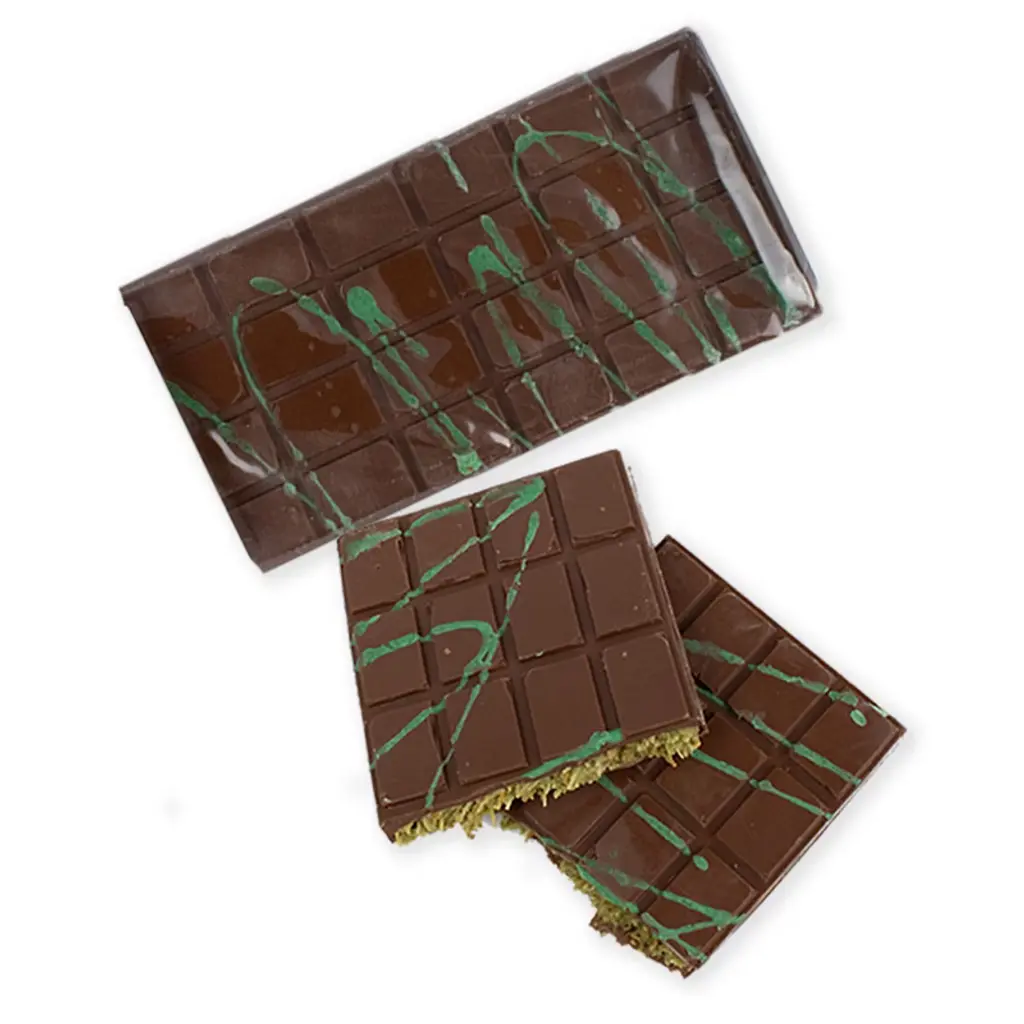 Experience the indulgence of our Dubai Chocolate Bars. Crafted with premium milk chocolate and infused with authentic Middle Eastern flavors. Each 7.4oz bar features a luxurious blend of pistachio cream, tahini, and a knafeh center. Delivering a rich, layered taste that’s both exotic and comforting. Known for their elegant presentation and gourmet quality, these Dubai Chocolate bars are quickly becoming a favorite among chocolate lovers and gift givers alike. Select between a 3 count or 6 count of these delicious bars. Measuring 16cm x 9cm x 2.5cm, they’re ideal for Christmas Candy displays, Holiday Candy Gifts, or thoughtful treats for teachers, mail carriers & more. Each bar is individually wrapped and boxed for convenience, creating a safe, hygienic and ease of distribution for anyone receiving this sweet treat. These sweet chocolate candy bars are boxed in fun, elegant Santa Belt Merry Christmas themed boxes. Heat-sensitive and shipped with cool pack protection, these Dubai Chocolate bars are a standout choice for anyone seeking unforgettable flavor and festive flair.