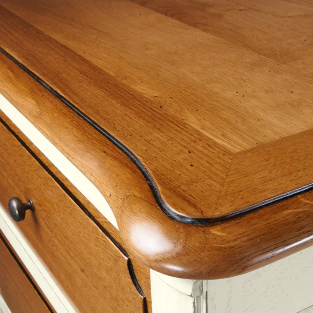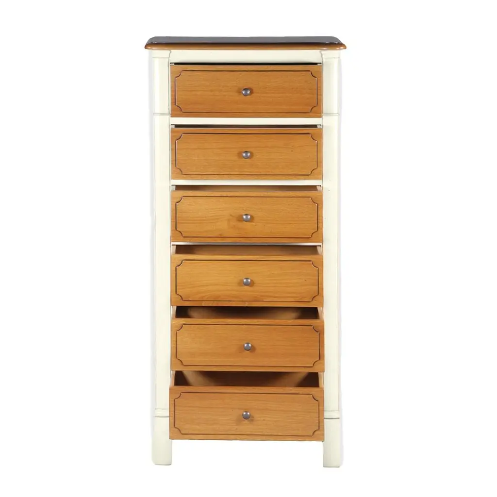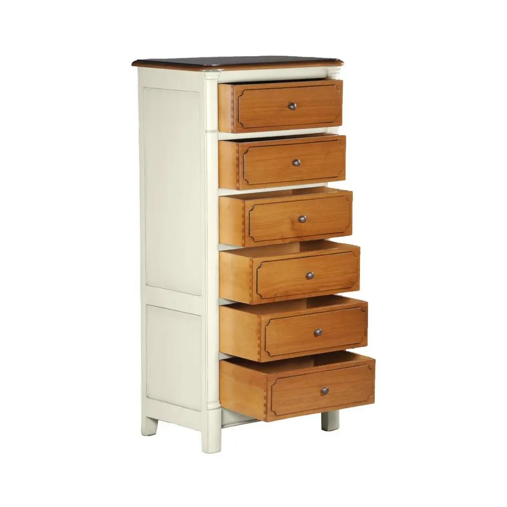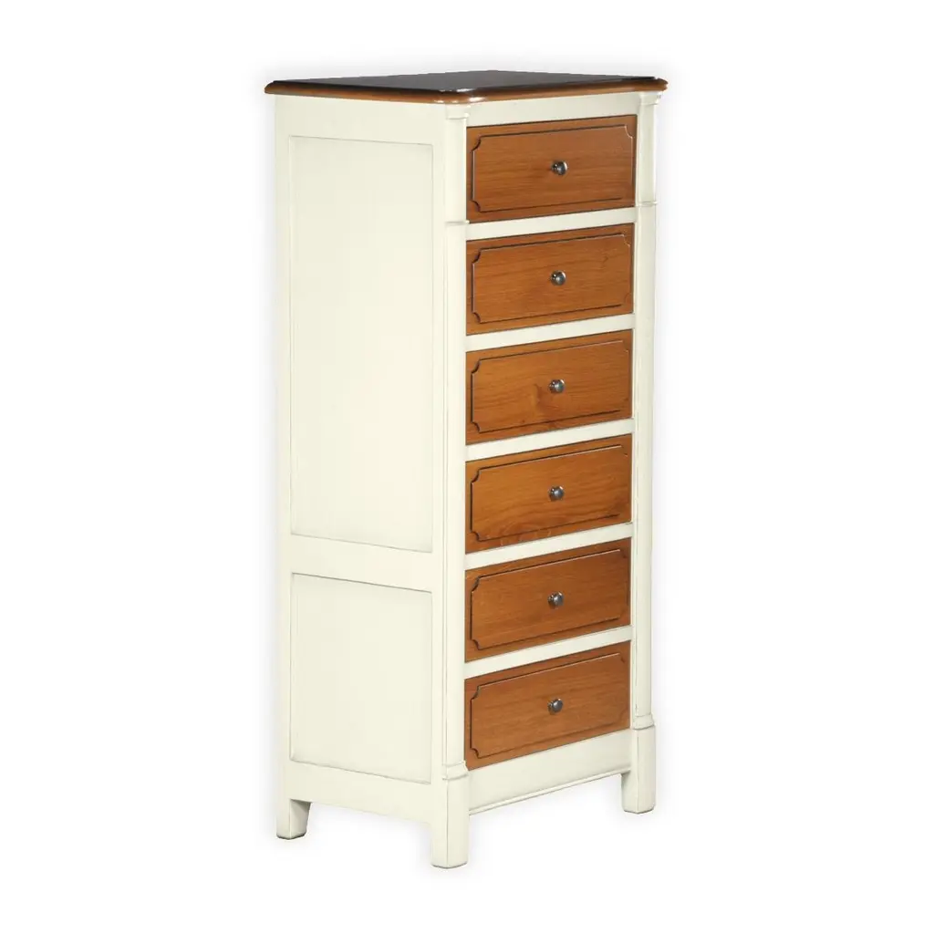 6-Drawer French Chiffonier In Solid Oak, Charming White-Cream Finish