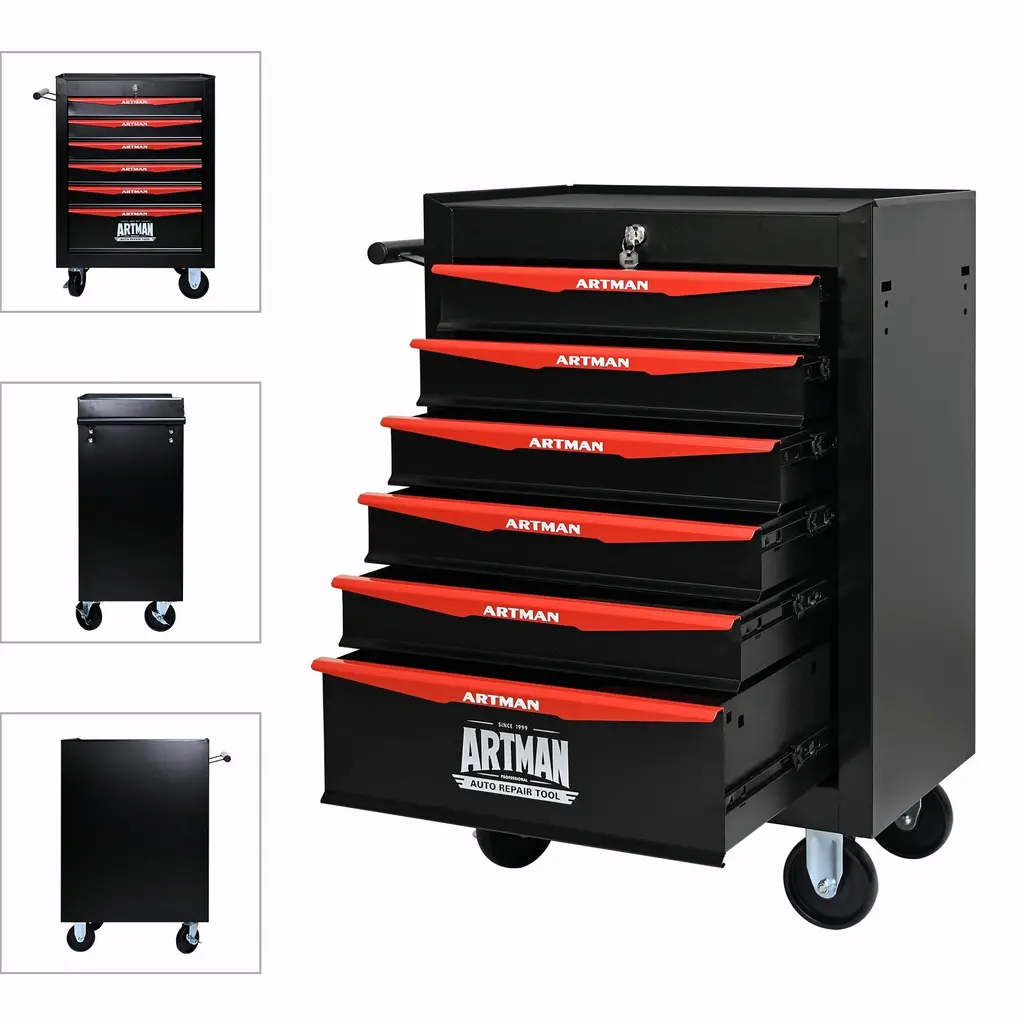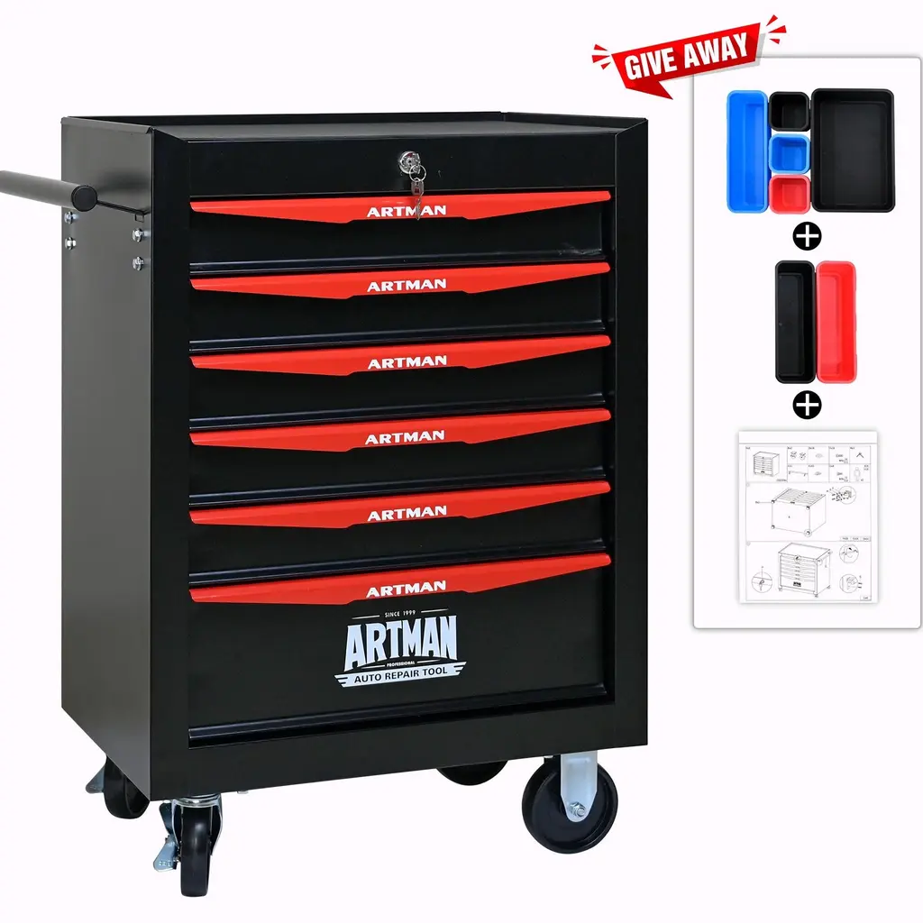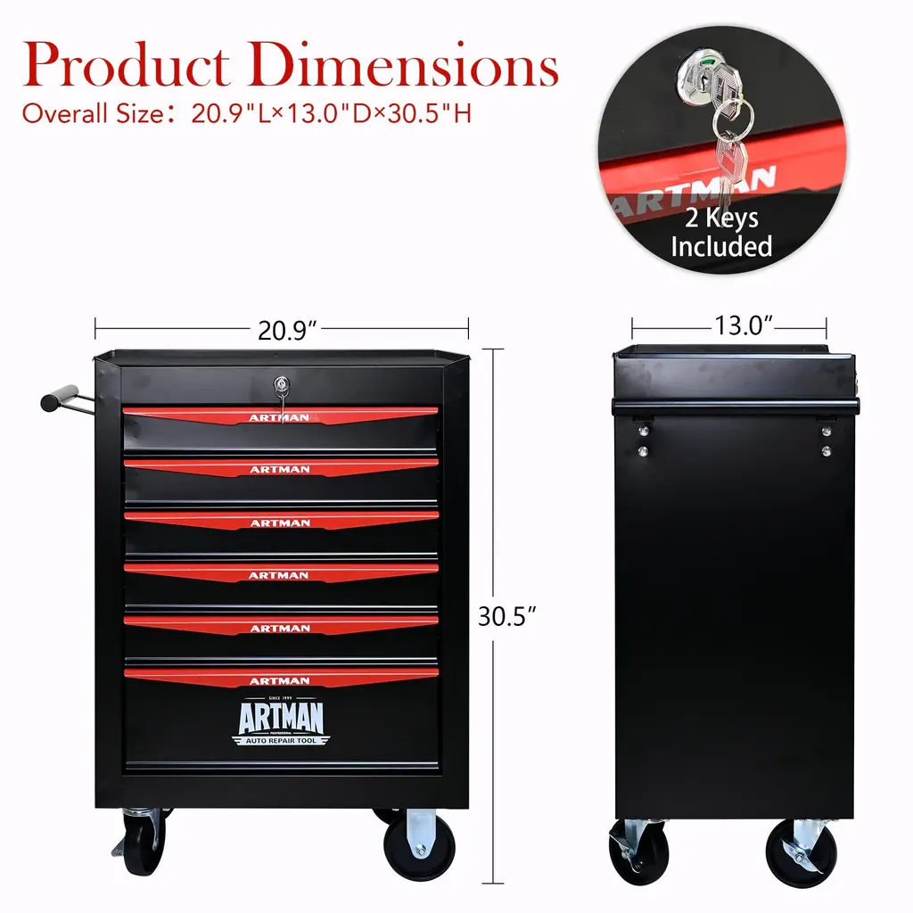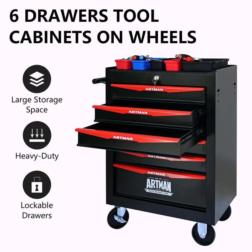 6-Drawer Mobile Tool Cart - Ball Bearing Slides - Locking Casters - Black