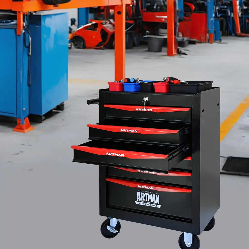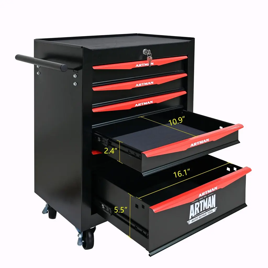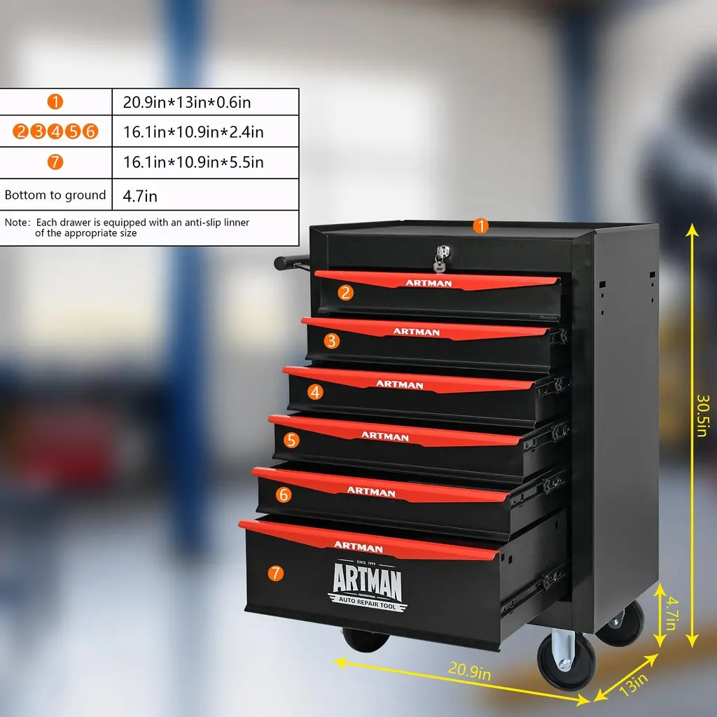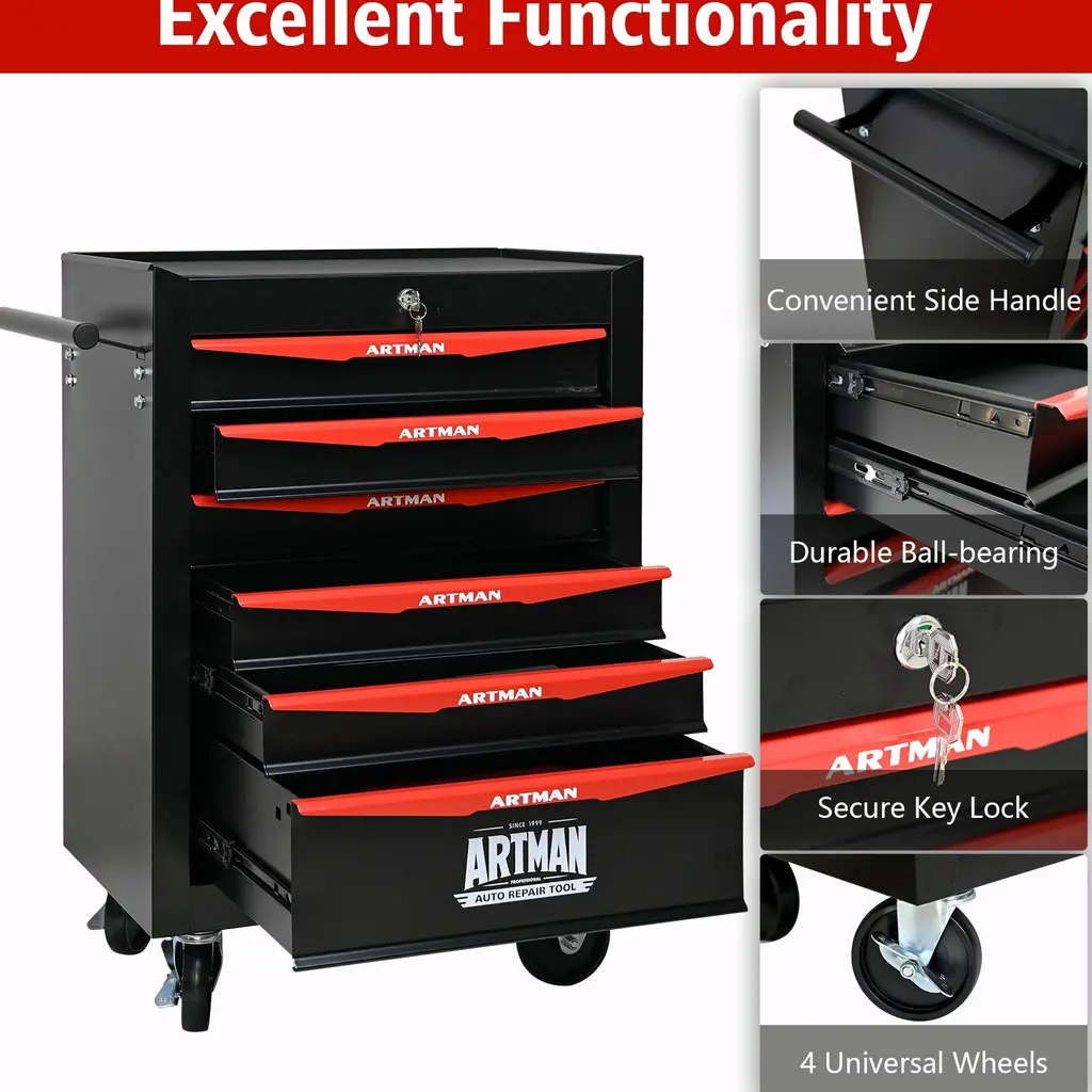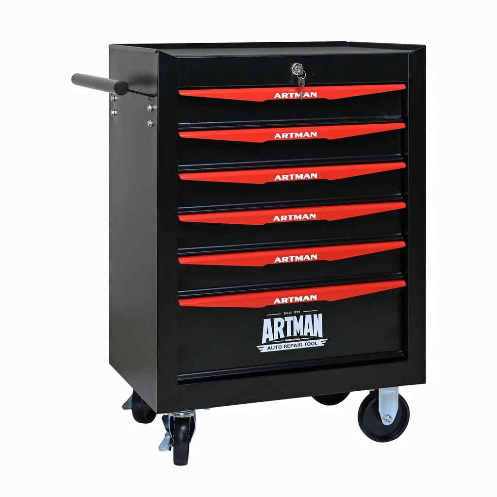 6-Drawer Mobile Tool Cart - Ball Bearing Slides - Locking Casters - Black