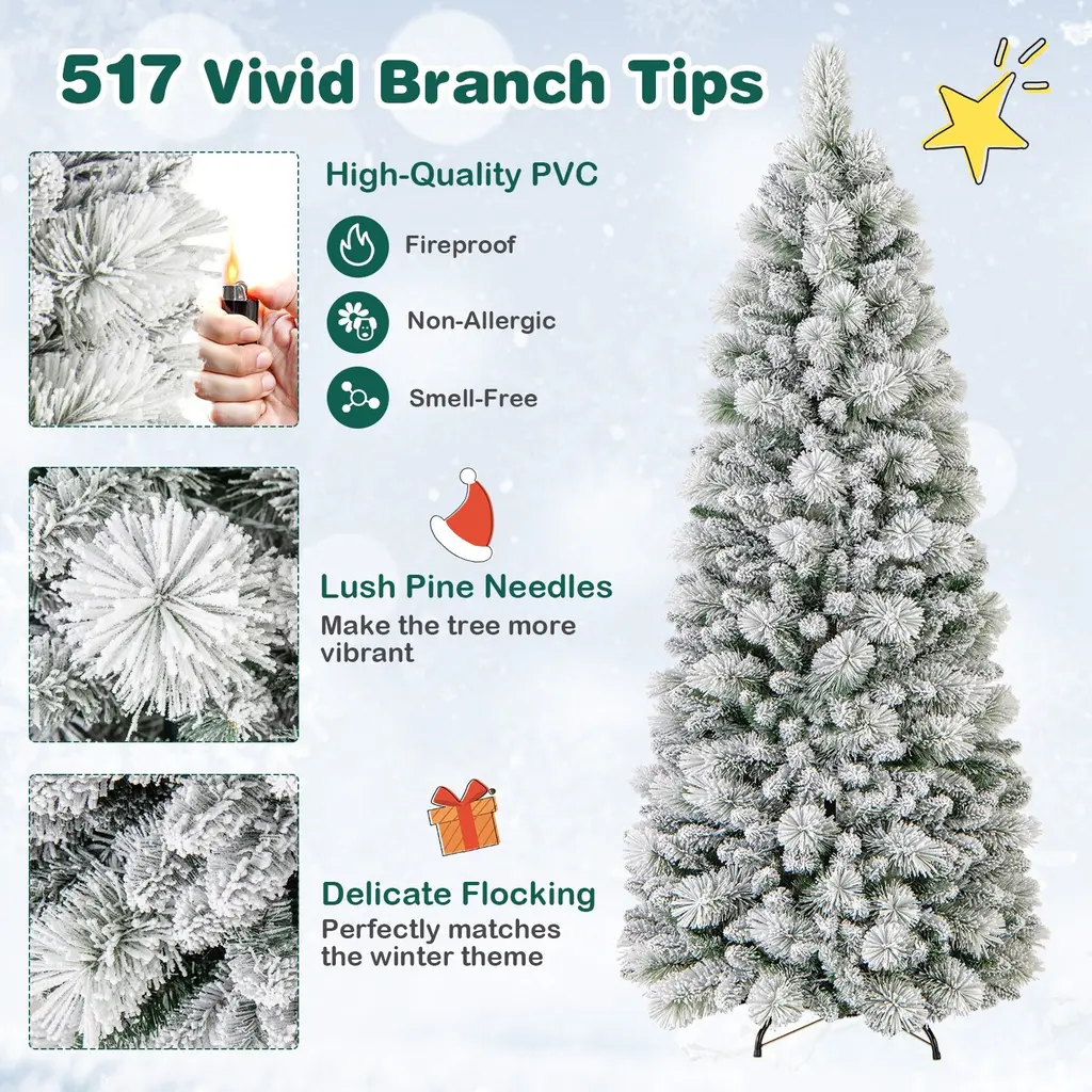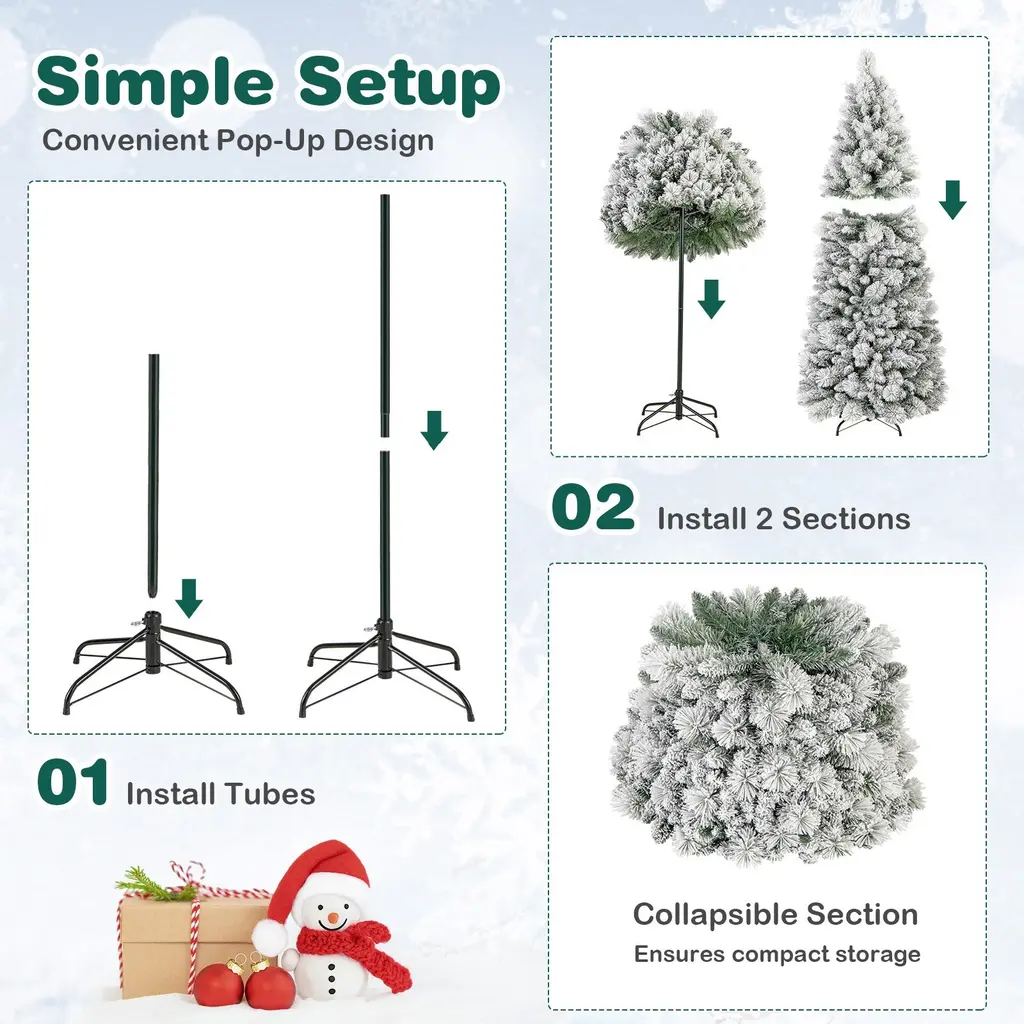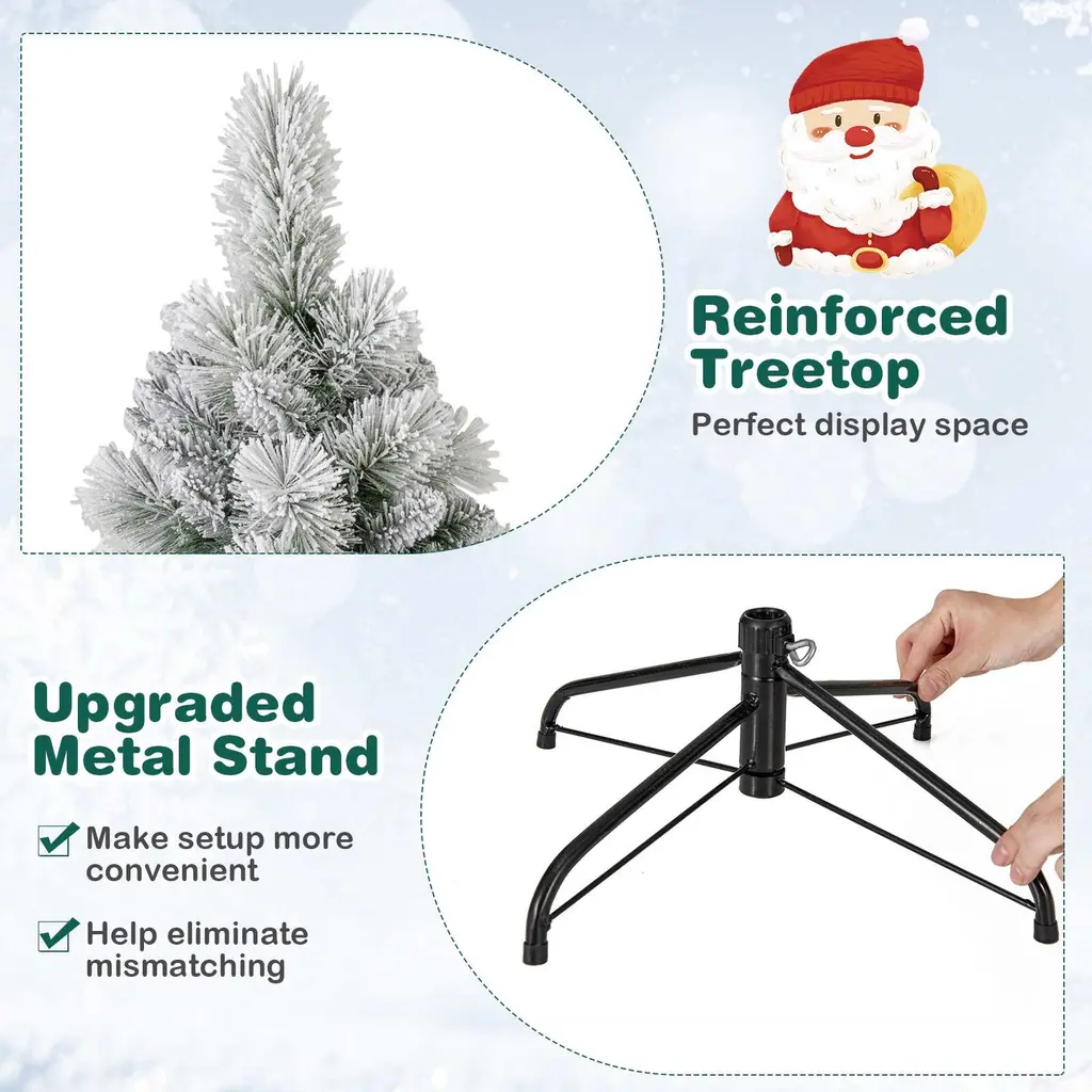 6 Feet Flocked Christmas Tree With Pine Needles And Led Lights - 6 Foot