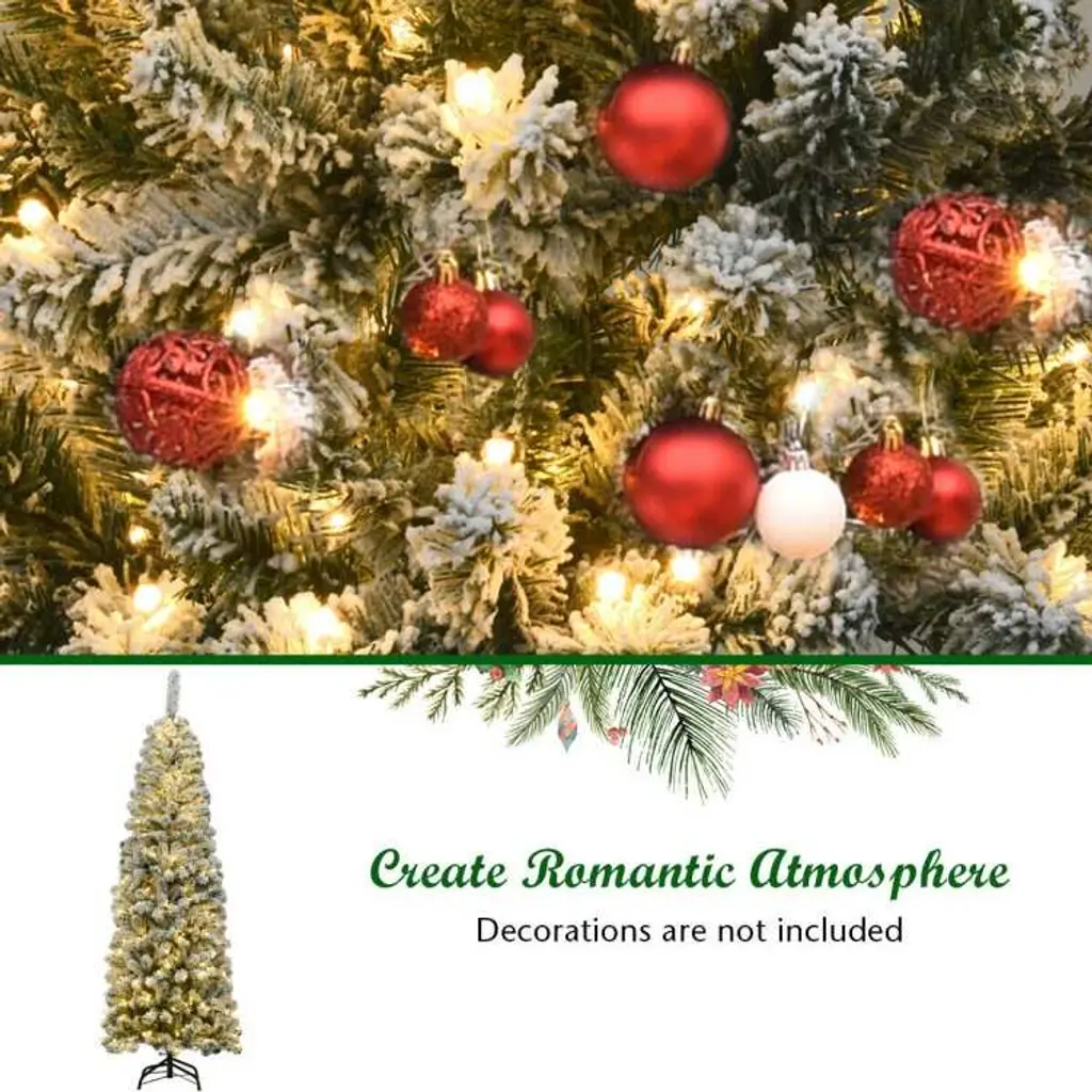 6 Feet Pre-Lit Snow Flocked Artificial Pencil Christmas Tree With 250 Led Lights - 2' X 2' X 6' - White