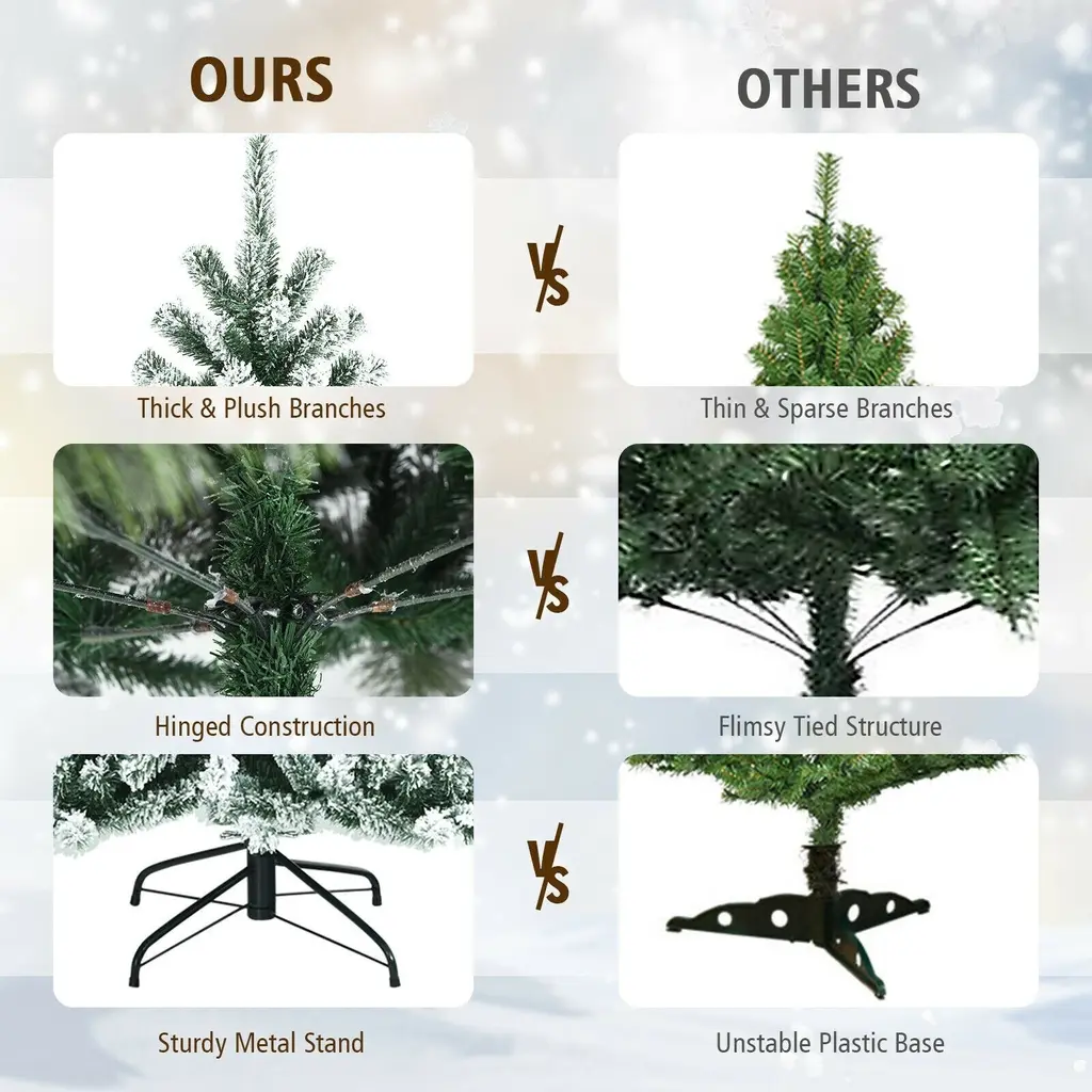 6 Feet Pre-Lit Snow Flocked Hinged Christmas Tree With 928 Tips And Metal Stand - 3.4' X 6'(dia X H) - 6 Foot