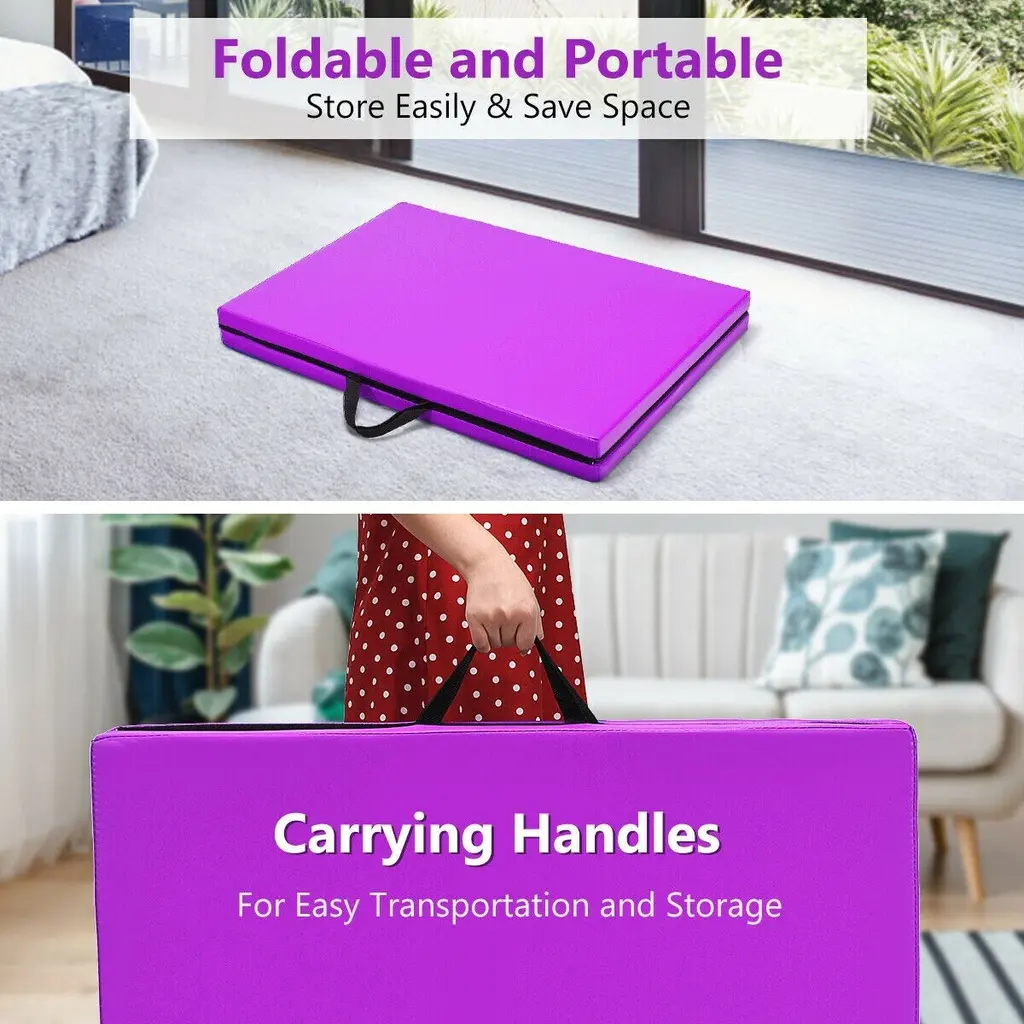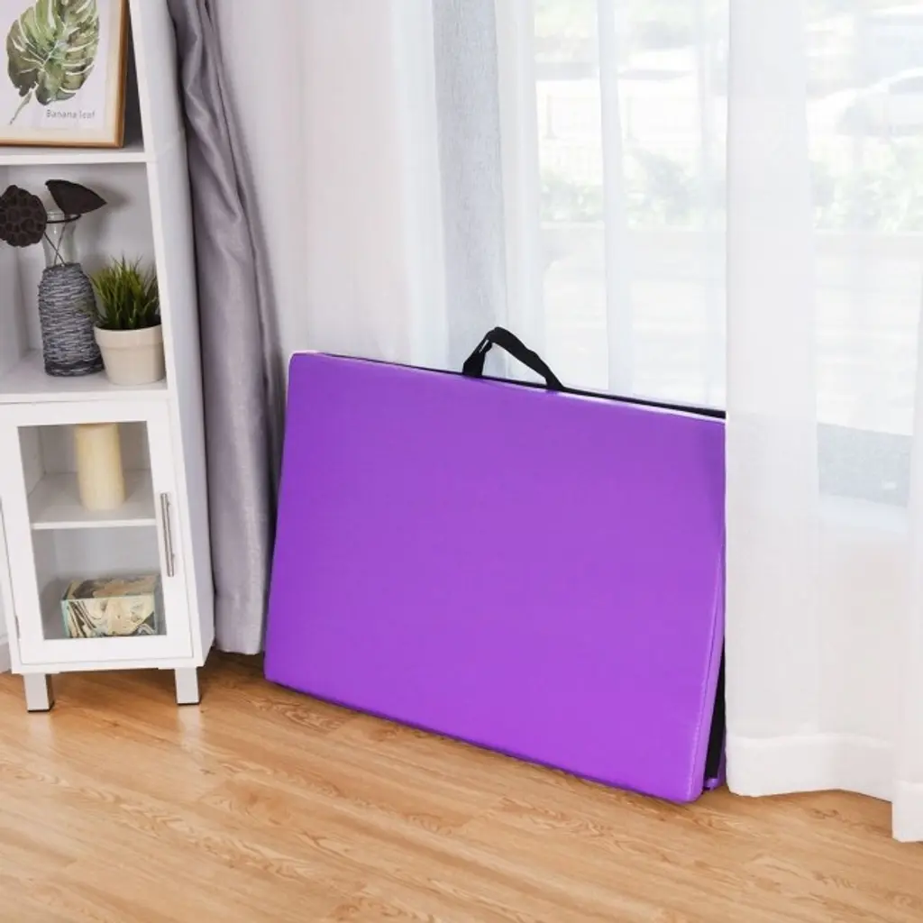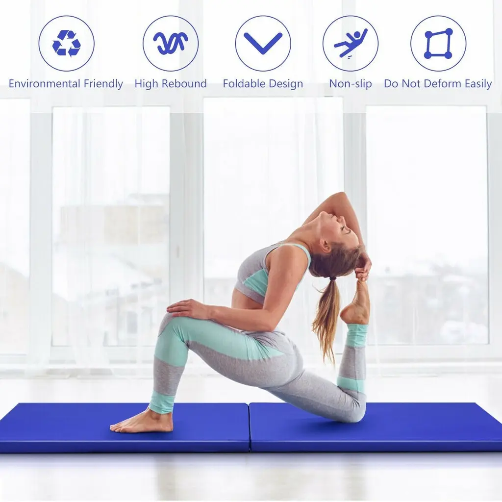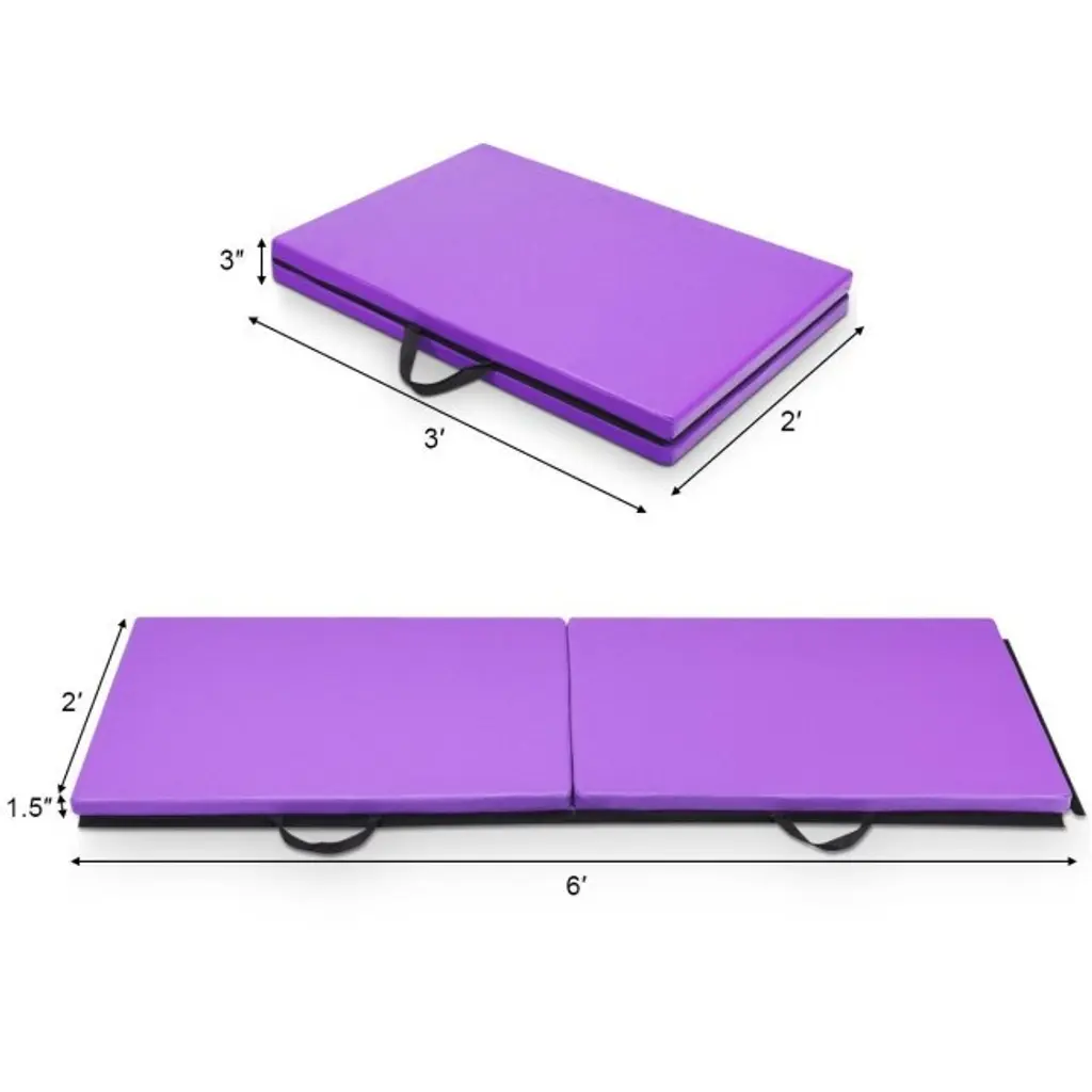 SpecificationsKey Features● Durable Material-Eco-friendly: The giantex gymnastic mat has two panels which is made of eco-friendly PU cloth and high quality EPE pearl cotton, which achieve healthy, durable and better resilience, not easy distorted. ● Reinforced Carry Handle and Foldable Design: Giantex gymnastics mat features humanized design with reinforced carrying handle and foldable construction. Expand Size: 6' x 2" x 1.5 (L x W x H), Folding Size: 3" x 2" x 3.0"(L x W x H), which will avaliable to be folded into quarters and the hand carry belt is deisgned to make it easy and convenient for you to carry. ● Water Proof and Tear-Resistant: The PU leather surface will make it more easier to clean in daily use. Additionally, you can place this folding mat foam bed in living room, guess room, family room, studio, rv trailer, mobile home, boat, and truck to made a simple but comfortable bed. ● Velcro and Special Zipper Design: The velcro on the four edges is designed to connect end to end of the folding mat.Every panel has a zipper so you can clean or change the foam if needed. ● Available for Combine One More Mats Together: This Giantex exercise mat features hook andloop velcro on all sides, which is available for you to combine one more mats together if you buy more than ones, as to get a larger size mat for tumbling runs or large workout area according to your needs.DescriptionThis 6' x 24" x 1.5" folding gymnastic mat is a perfect mat for the bed, sofa, tatami, and floor.You can place this folding exercise mat in living room, guess room, family room, studio, RV trailer, mobile home, boat, and truck to make a simple but comfortable bed. This mat has two panels and it will be easy and simple to transport, and you can bring it with you for the outdoor activity. It has a hand carry belt, because of this, you will never feel inconvenient to go outdoors. Also it is perfect for teaching basic gymnastics and exercises to kids.Don't hesitate to buy it!