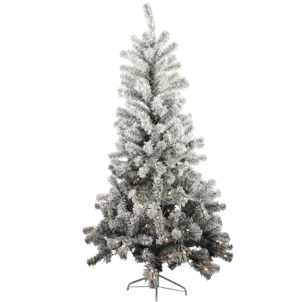Display your favorite ornaments on this artificial pine Christmas trees, which features 450 tips for an authentic look. Snow flocking adds a wintry touch, and 150 lights cast a warm glow around your living room.Product Features: Clear Lights, Pre-litHeight: 6 Foot