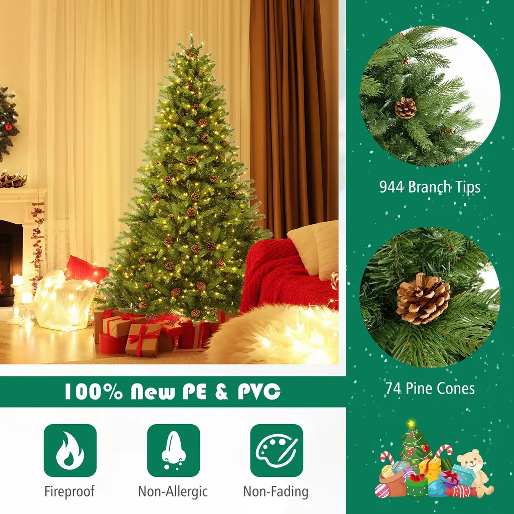 6 Ft Artificial Christmas Tree With Pine Cones And Adjustable Brightness - Green - 6 Foot