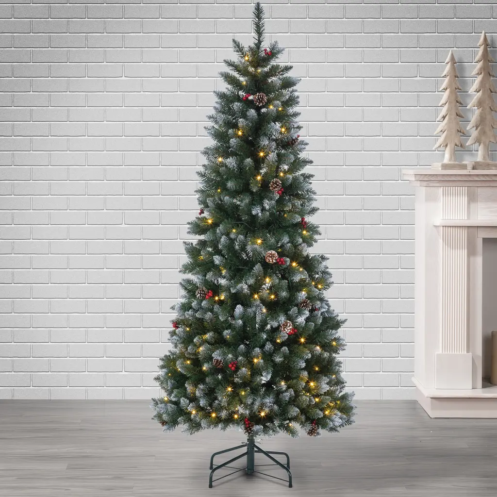 6 Ft Pop Up Flocked Green Pine Tree With Pine Cones And Red Berries - N/a - Green