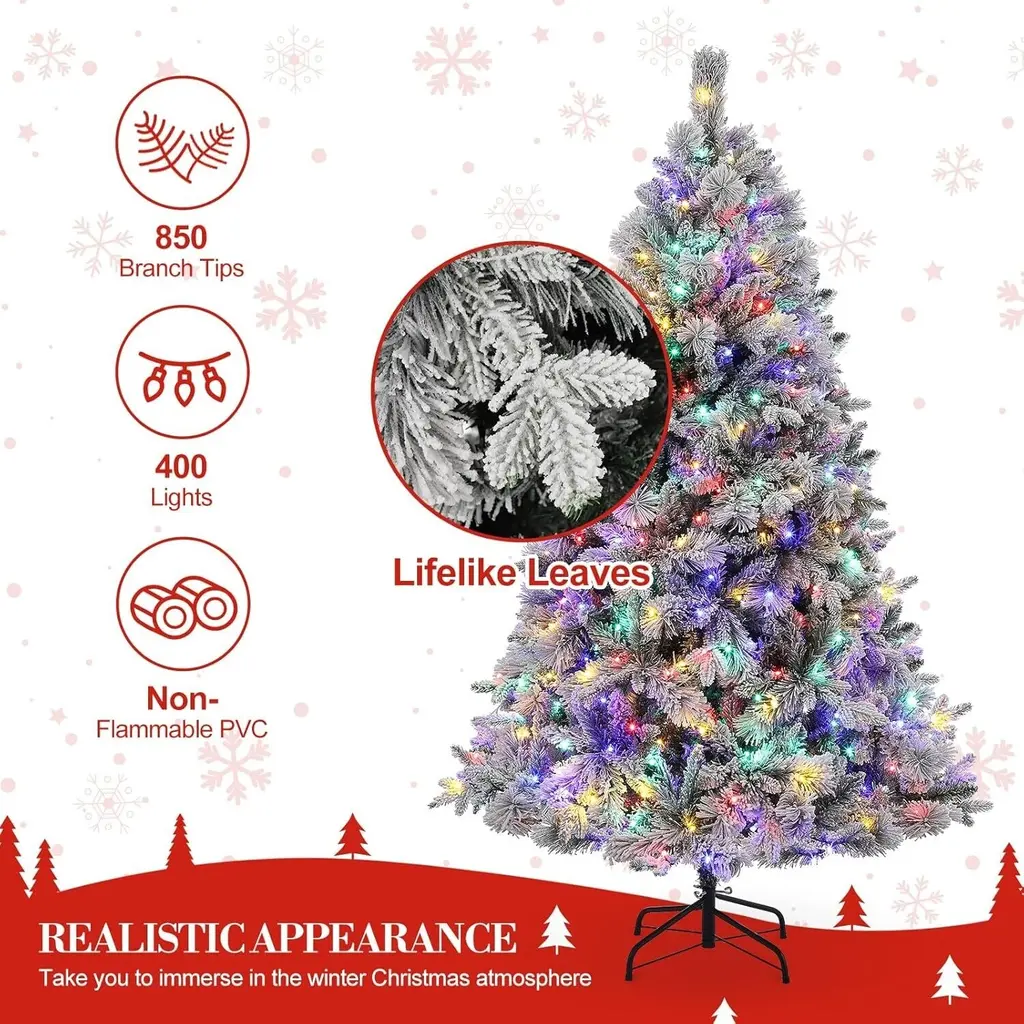6 Ft Prelit Artificial Christmas Tree With 400 Multicolor Led Lights - White