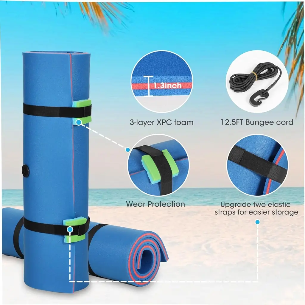 6 Ft Swimming Pool Floating Pad Foam Mat For 1 Adults, 3-Layer Tear-Resistant Xpe Foam - Blue