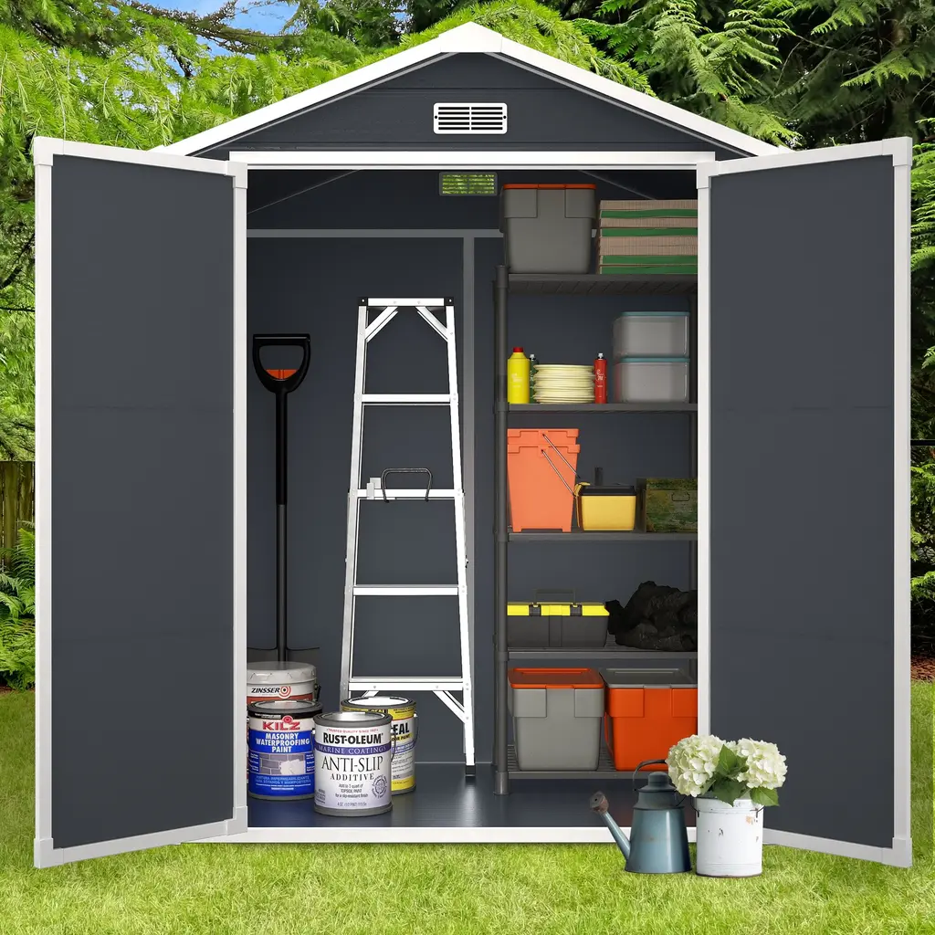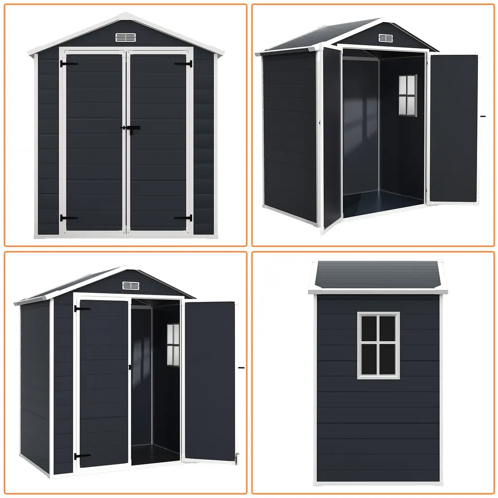 6 Ft X 4 Ft/6 Ft X 8 Ft/8 Ft X 10 Ft All-Weather Resin Outdoor Plastic Storage Shed W/floor, Spire Tool Shed - Dark Grey - 6 X 4