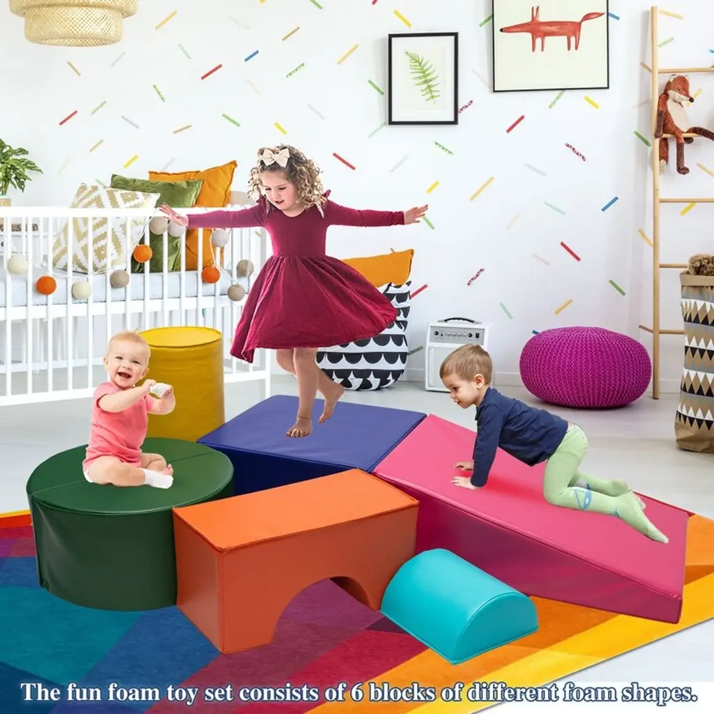 Soft and Safe - This kids crawling toy set is made up of high-quality EPE foam lining and a soft, skin-friendly surface, giving kids a thoughtful set of toys that can stay with them all day long. This climbing toy set is specially designed for toddlers to count on for comfort and safety.Full Play - As an important part of the perfect indoor children's playground, your toddlers can use this climbing toy set to move, lift, carry, stack, slide and more, fully activating their immature bodies and allowing children to freely release Their energetic nature.Complete Combination- This crawling toy set consists of a foam ramp, a cylinder, a cuboid block, a set of U-shaped blocks that can be embedded, and a wavy miniature obstacle climbing mat. This set features full play and exercise options, so kids can rearrange and set them up freely.More Vitality - a variety of shapes and colors can better stimulate children's imagination. The diverse combinations fully satisfy children's curiosity.Hassle-Free Maintenance -The surface of high-quality materials can be easily scrubbed and maintained by wiping with a damp cloth, ensuring children's play equipment is clean at all times. Please refer to the product size pictures for overall dimension