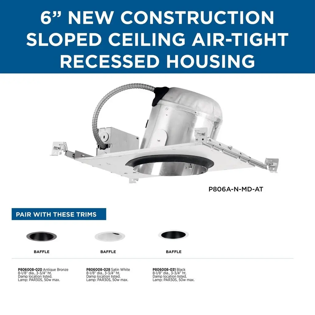 6 In. Steel Recessed Slope Ceiling Non-Ic New Construction Housing For 6 In. Trim - Medium - Galvanized - Medium