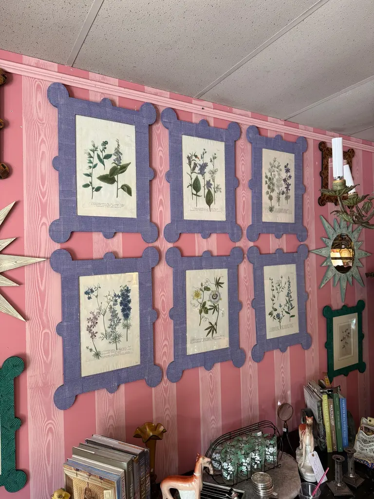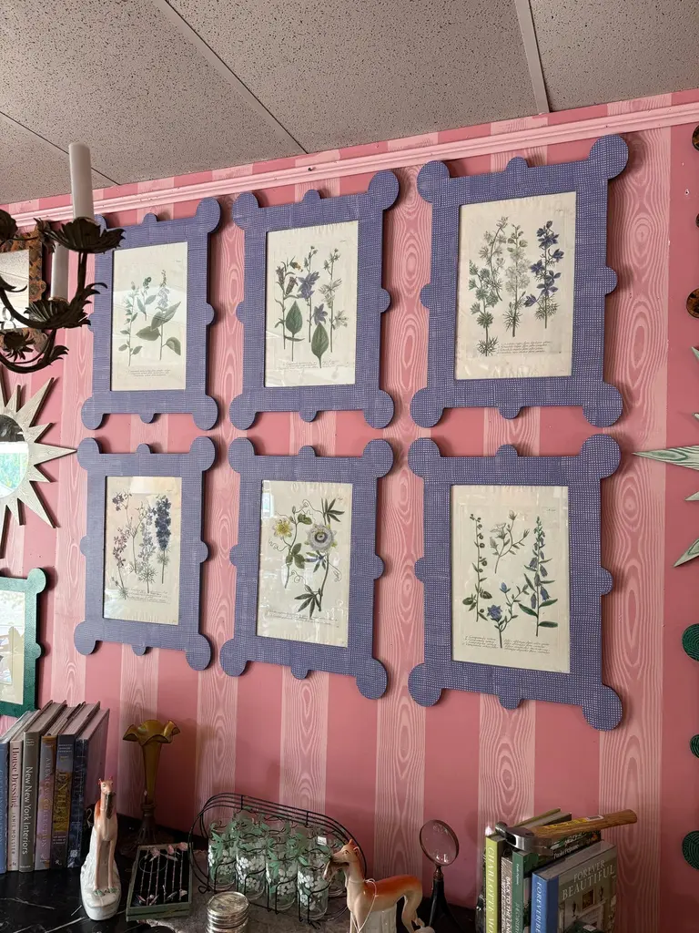 Special set of 6 botanicals by Johann Wilhelm Weinmann (ca 1740-1750) displayed in custom matching hand painted lavender burlap finish frames by The Fabulous Things. Sold individually