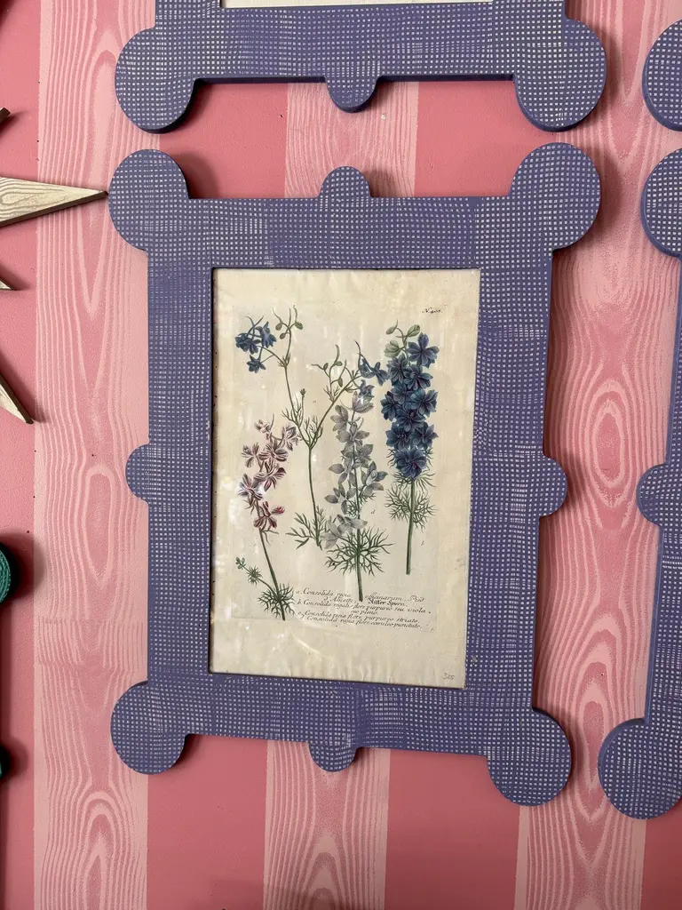 6 Johann Wilhelm Weinmann Botanicals (1740-60) In Hand Painted Lavender Frames