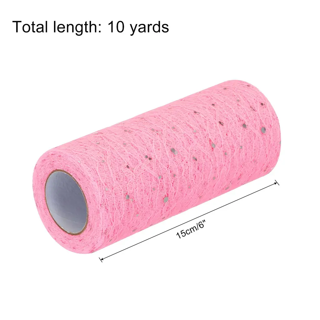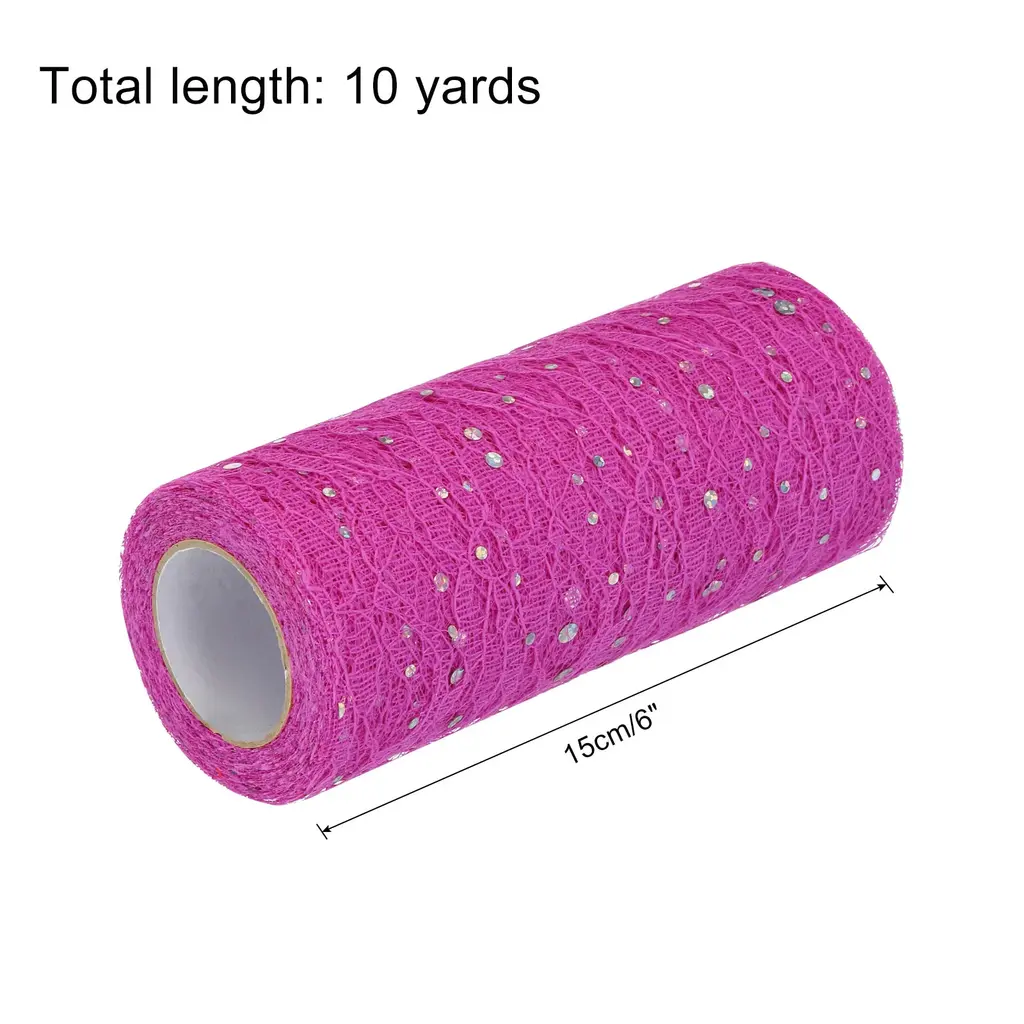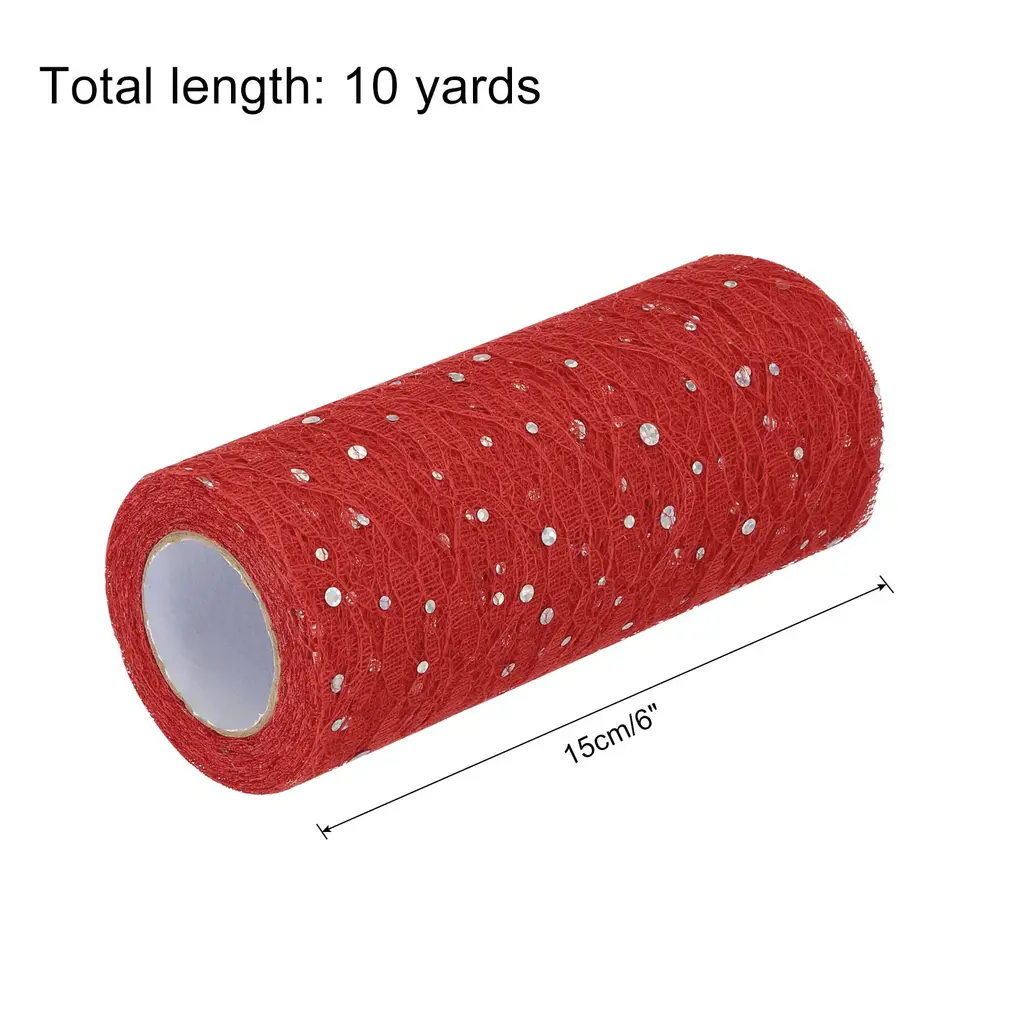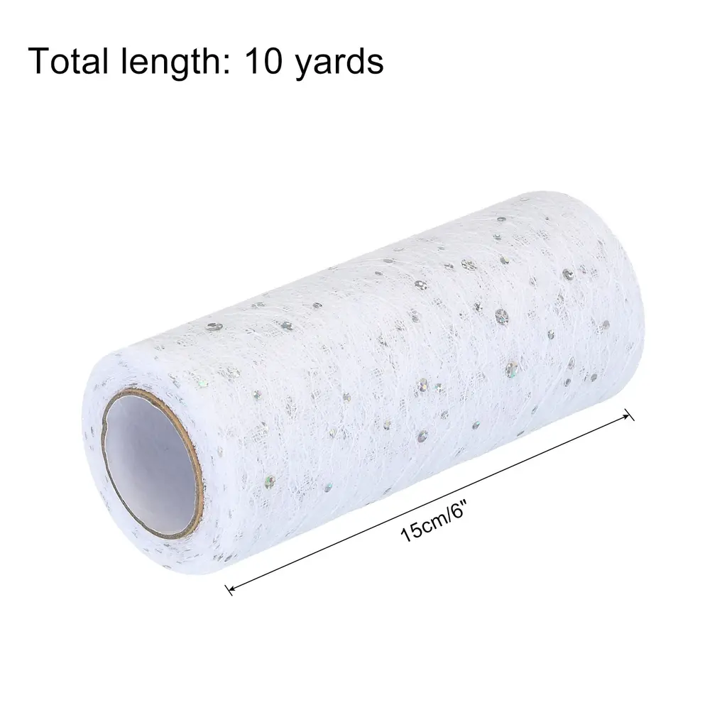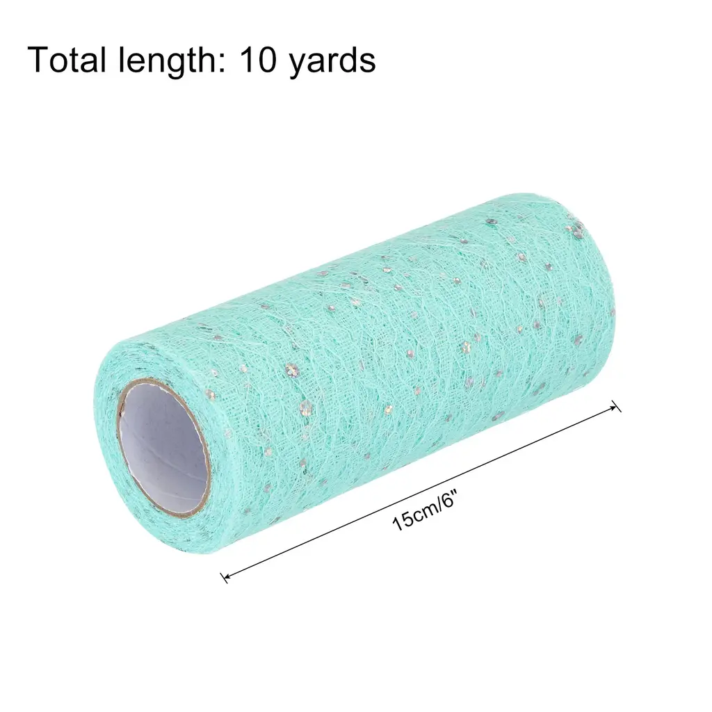 What is this?Wide shiny glitter fabric tulle ribbon roll is a romantic and elegant decorative material that can be used for gift decoration on important holidays such as weddings, birthday, Christmas, Mother's Day, Teacher's Day, etc. Bling tulle ribbon can decorate various bouquets, gifts, flower baskets, chairs, tables, etc. Sparkling tulle ribbons can also be used for various DIY sewing craft projects, such as making flower wreaths, hair bows, wristbands, and sewing puffy skirts.What will I get?Tulle roll fabric spools ribbon, is in size of :15cm/6-inch width, 10 yards total lengthIn the package of: 1pcs x Tulle roll fabric spoolsIs there any advantages of the product?The glitter tulle fabric roll is soft, transparent, with stars shining and beautiful, making it an elegant and generous decorative fabric; Glitter tulle fabric ribbons can be knotted and made into various colorful bows, used in hair accessories, clothing, bouquets, DIY, etc; Tulle ribbon for gift wrapping is durable, lightweight, and reusableHow to use it?Steps of installation:1.Prepare tulle roll fabric spools of an appropriate size ; 2.Cut out the length you wantWhat should I notice?Please Note : Please select the appropriate size of tulle roll fabric spools ribbon, especially the size of width and length