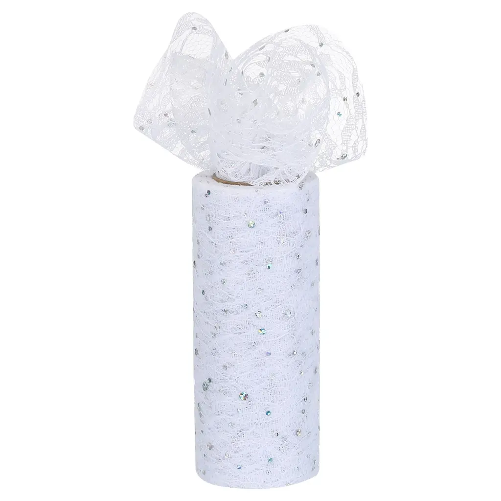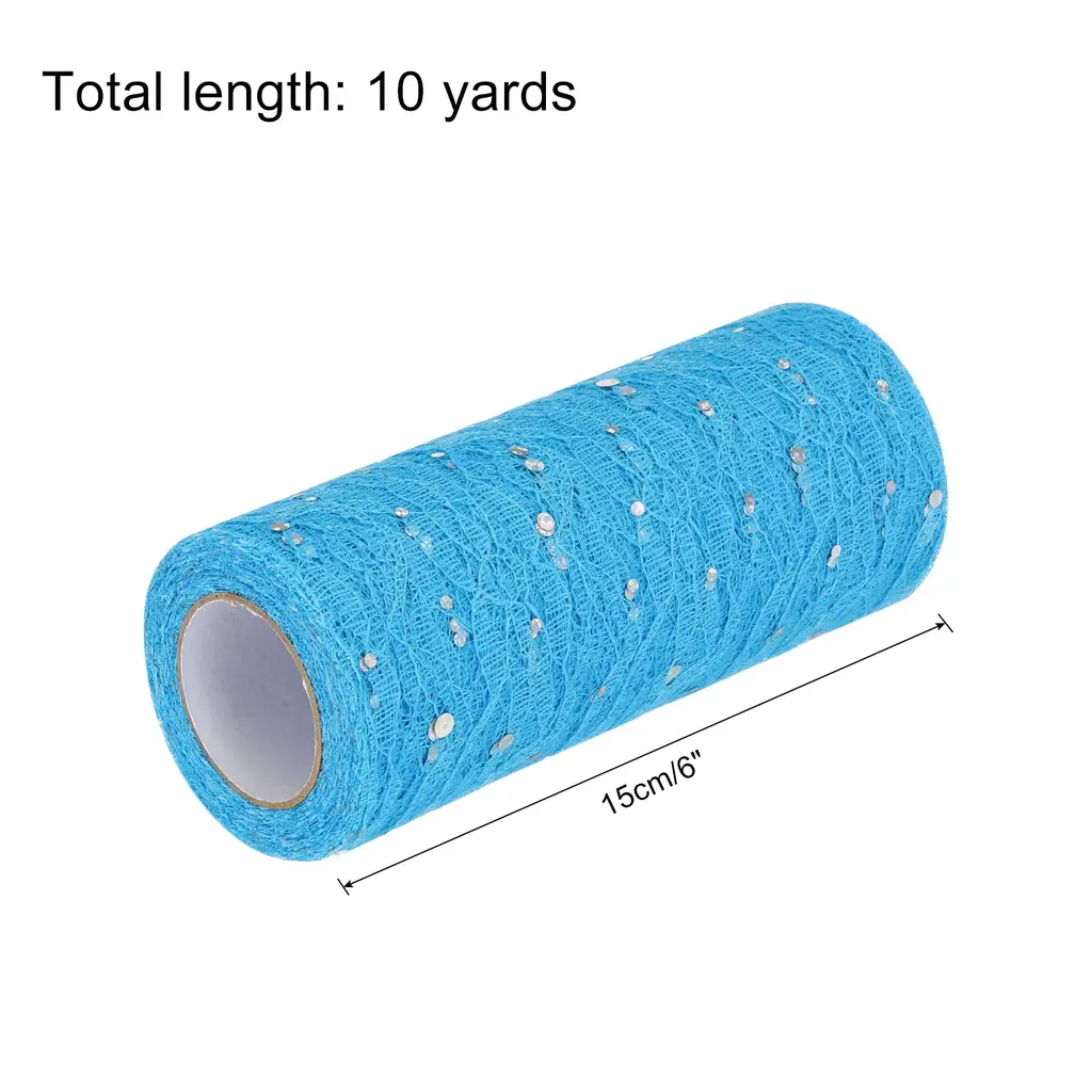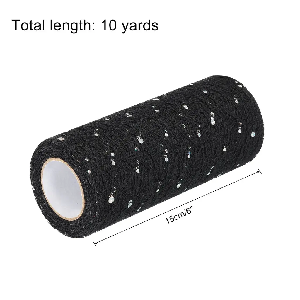What is this?Wide shiny glitter fabric tulle ribbon roll is a romantic and elegant decorative material that can be used for gift decoration on important holidays such as weddings, birthday, Christmas, Mother's Day, Teacher's Day, etc. Bling tulle ribbon can decorate various bouquets, gifts, flower baskets, chairs, tables, etc. Sparkling tulle ribbons can also be used for various DIY sewing craft projects, such as making flower wreaths, hair bows, wristbands, and sewing puffy skirts.What will I get?Tulle roll fabric spools ribbon, is in size of :15cm/6-inch width, 10 yards total lengthIn the package of: 1pcs x Tulle roll fabric spoolsIs there any advantages of the product?The glitter tulle fabric roll is soft, transparent, with stars shining and beautiful, making it an elegant and generous decorative fabric; Glitter tulle fabric ribbons can be knotted and made into various colorful bows, used in hair accessories, clothing, bouquets, DIY, etc; Tulle ribbon for gift wrapping is durable, lightweight, and reusableHow to use it?Steps of installation:1.Prepare tulle roll fabric spools of an appropriate size ; 2.Cut out the length you wantWhat should I notice?Please Note : Please select the appropriate size of tulle roll fabric spools ribbon, especially the size of width and length