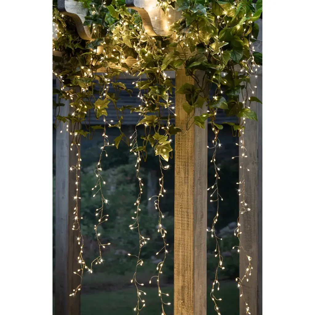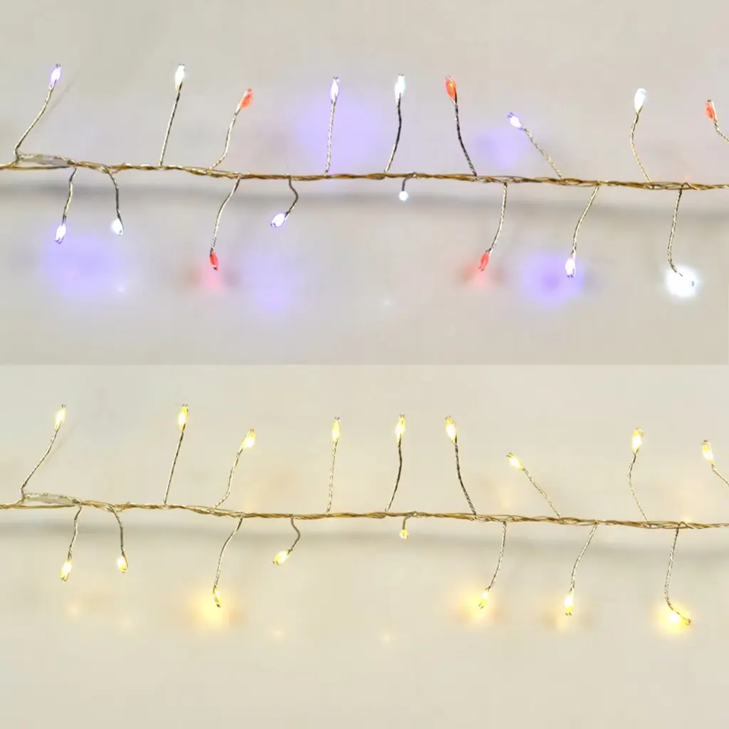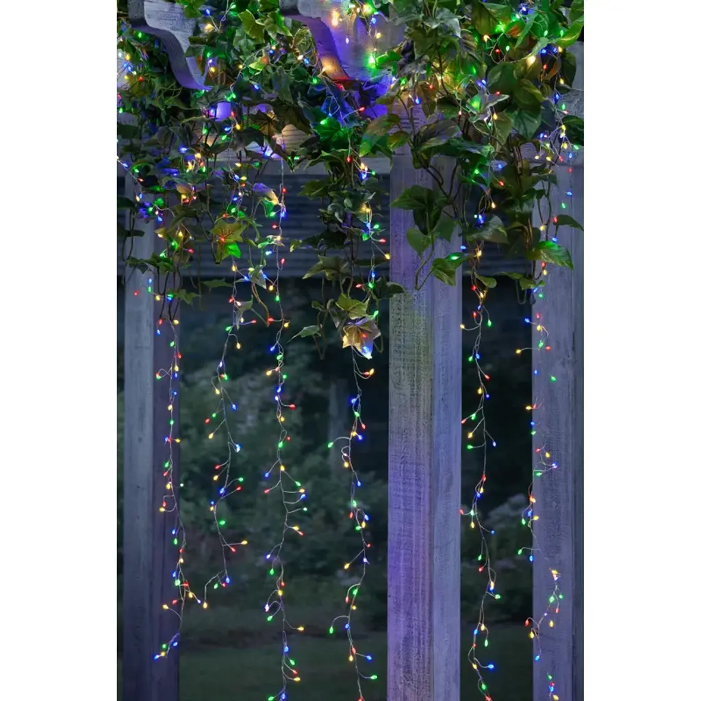 You will make a glowing light impression with this 6-ft long with 6 6-ft firecracker curtain drop lights. A total of 600 light multi-function electric firecracker curtain lights. 6 Drops, each drop 6 ft long, each with 100 lights on a 6-ft silver wire with warm white/multi-color LED bulbs. Ten different settings. Includes convenient 6-hour timer and outdoor adapter, please be sure to plug into an outlet that has GFCI.