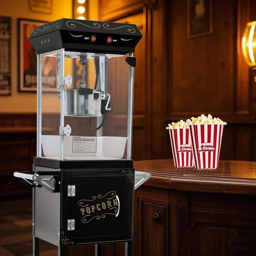 6 Oz. Popcorn Maker: 480 Watt Theater Style Popcorn Maker With A Heated Platform For Fresh Popcorn And A Drawer - Black
