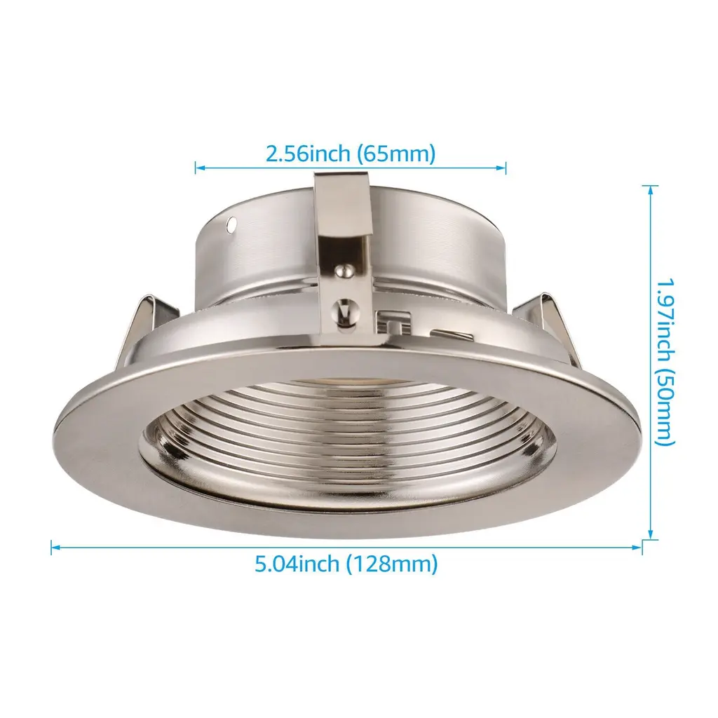 New ReleaseThis trim adds the perfect finishing touch to modern, minimalist, or industrial-inspired interiors, enhancing the overall visual harmony of your space.Eradicate Eye IrritationThe metal step baffle cleverly reflects light, creating a softer and evenly distributed illumination. Say goodbye to annoying glare, as this baffle ensures well-balanced lighting that is gentle on the eyes, providing enhanced visual comfort and a soothing ambiance.Durable and Compatible with 4-Inch CansDesigned for standard 4-inch recessed cans and ceiling lighting fixtures, including Halo/Juno remodel recessed housing, this trim is crafted from high-quality all-metal materials. It is resistant to rust and maintains its original appearance over time without aging or deterioration, offering a long-lasting and visually appealing lighting solution.Versatile Compatibility with BulbsThis ceiling can light trim is compatible with a wide range of commonly used bulbs, including PAR16, PAR20, BR20, as well as halogen, incandescent, and LED bulbs of the same size. Easily swapping out bulbs allows you to save significantly on maintenance and lighting fixture costs, offering both convenience and cost efficiency.NotePlease note that the baffle of this trim has specific dimensions. The maximum inner diameter is 3.5 inches, the top diameter is 2.68 inches, the ring diameter is 5 inches, and the height measures 1.89 inches. Before purchasing, please ensure these dimensions align with your can’s specifications for proper compatibility.Specifications:Material: MetalCompatible bulb: PAR16, PAR20, BR20Compatible recessed can type: 4-inch cans