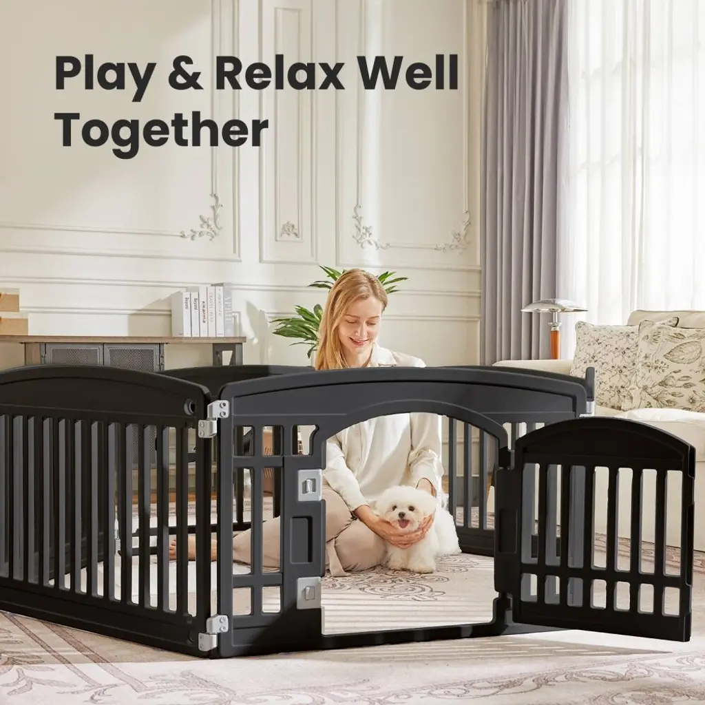 6-Panel Portable Adjustable Folding Pet Playpen For Small To Medium Dogs - Black