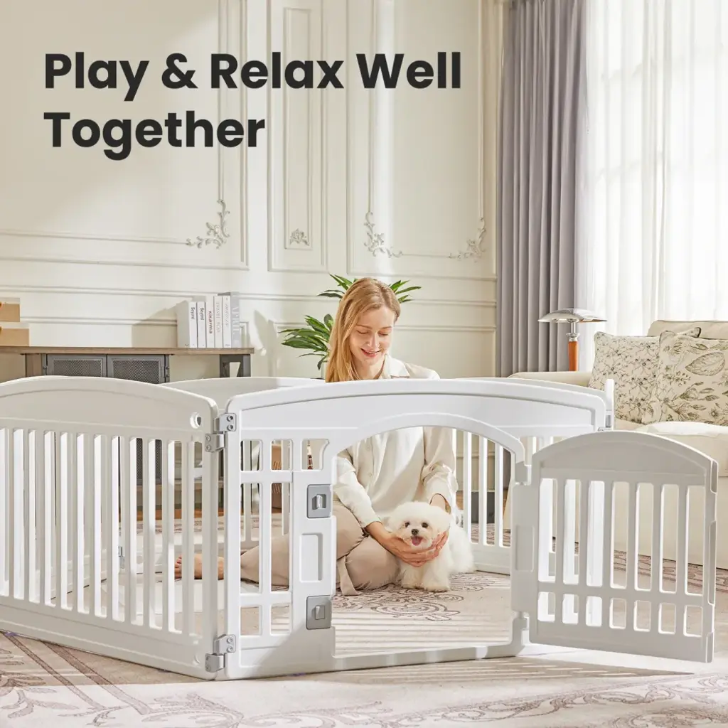 6-Panel Portable Adjustable Folding Pet Playpen For Small To Medium Dogs - White