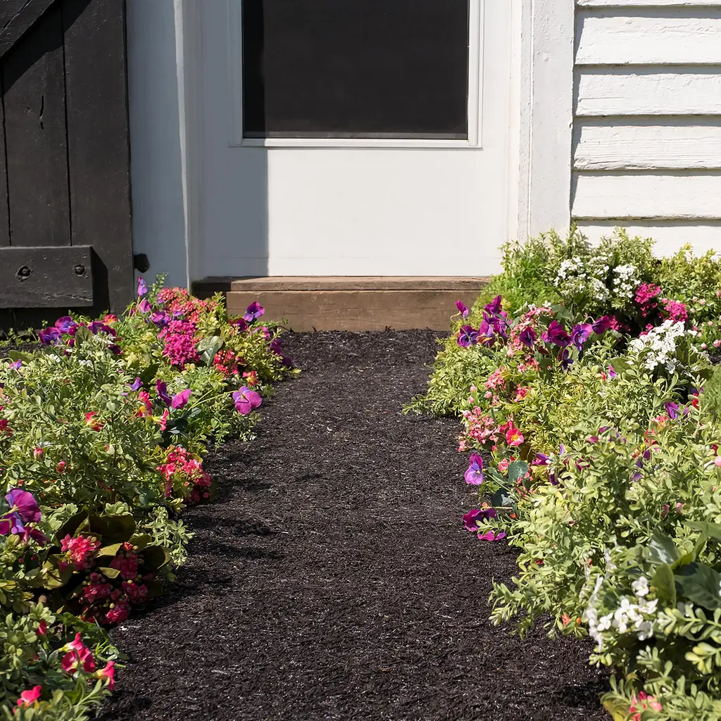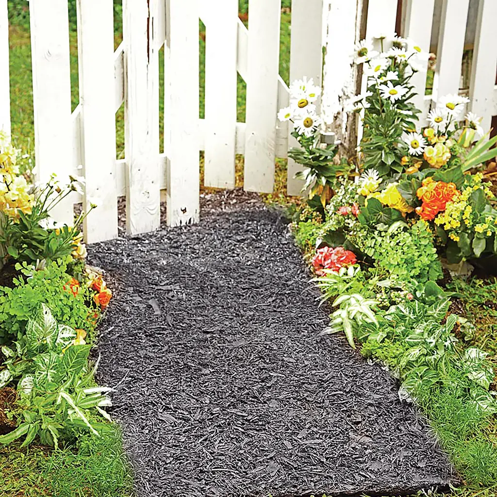 Our Permanent Mulch Recycled Rubber Pathway is a mulch look-alike that takes the work out of landscaping. Perma Mulch deters weed growth, but allows air, nutrients and water to pass through. This textured fake mulch walkway blends beautifully with your landscape. You'll love the manicured look it gives your yard. Plus, Permanent Mulch lasts for years, so there's no need to buy, haul, shovel and rake bulk mulch every spring. Recycled tires are shredded and formed into lightweight, long-lasting designs for veggie and flower gardens, landscaping around your home's foundation, specimen shrubs and trees, garden paths and more. It's so easy to use! Just lay it down and roll it out. You can cut it to fit around growing trees, shaped beds and narrow pathways. Unlike bulk mulch, Perma Mulch is scatter-proof and stays put. It won't blow away during fall leaf cleanup, pets (and other creatures) can't kick it up, and it always looks neat and tidy. Permanent Mulch is a practical solution to many yard and garden problems. Not only does it stop weeds and reduce yard work, it looks great and is easy to use. Try our long-lasting, no-maintenance Permanent Mulch today!