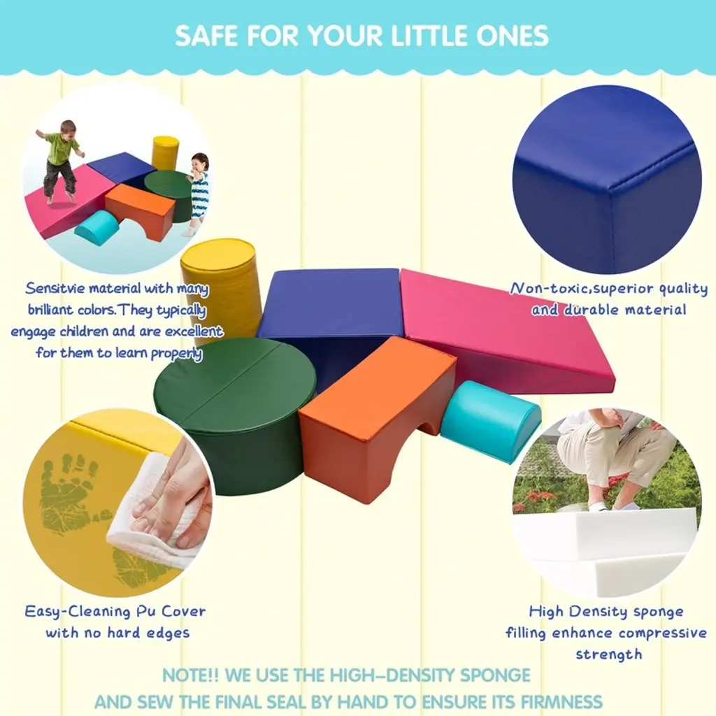 【High-quality material】:The inside of the toddler toys are made of environmentally friendly pearl cotton, and the outer layer is made of soft PU leather. And our toy set has passed ASTM certification, non-toxic, odorless, not easy to deform, and can be used for a long time. In addition, baby climber has strong dirt resistance and is easy to clean, saving you time and energy.【Sports Ability and Coordination Ability】:This toddler climbing toys indoor encourages babies and toddlers to learn many skills such as climbing, crawling and sliding. It improves children’s balance and coordination skills, develops various motor skills, and cultivates self-confidence and physical awareness. Growth is very helpful.【Creativity and Imagination】:These baby climbing blocks are light enough that your child can easily move them by themselves, and they can be freely arranged, stacked and recombined to help stimulate their imagination and creativity. Climbing toys are specially designed for children to release their lively nature. Your child can also play with friends to increase friendship and enjoy happy time.【Stability and safety】:The climbing toys for toddlers 1-3 are made of comfortable and safe materials, the blocks are light enough that your child can move them safely and easily on their own, and can be rearranged to build different configurations.【Wide scope of application】:This baby climbing toys indoor are lightweight, can be stacked, does not take up much space, and is easy to move and store. It is very suitable to be placed in kindergartens, homes, sschools and outdoors. Children can enjoy all day.