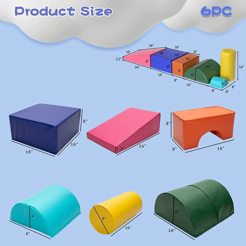 6-Piece Climb & Crawl Foam Activity Play Set Indoor Climbing Toys - Toddler - Multicoloured